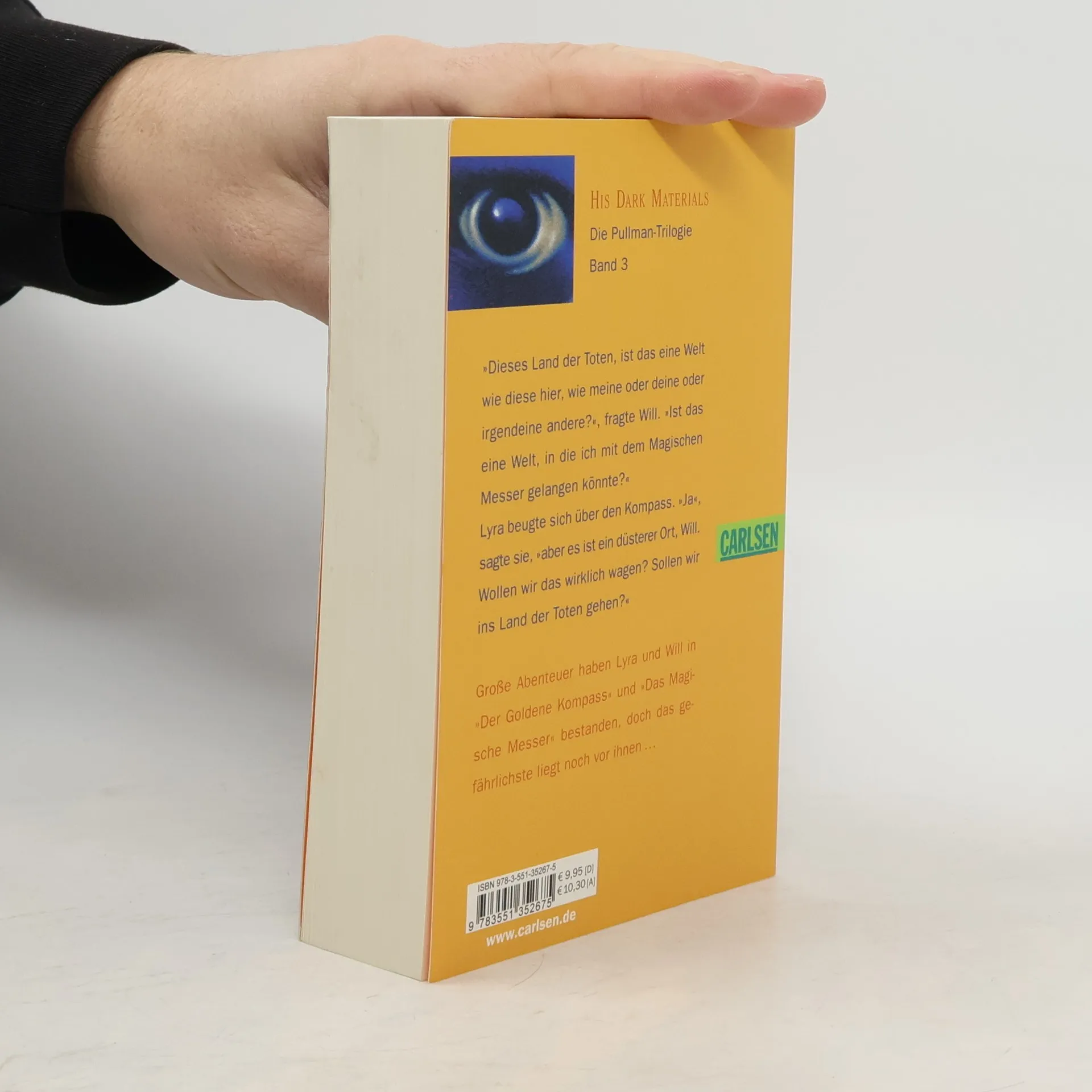 Viele atemberaubende Abenteuer haben Lyra und Will schon bestanden, seit der Goldene Kompass sie zusammenbrachte. Aber ihre gemeinsame Reise ist noch lange nicht zu Ende. Immer deutlicher spürt Lyra, dass eine Antwort auf ihre Fragen nur im Reich der Toten zu finden ist. Gegen alle Widerstände steigen Will und sie in diese schrecklichste aller Welten hinab fest entschlossen, eine alte Schuld zu sühnen und eine Prophezeiung zu erfüllen, von der sie nur eine vage Ahnung haben. Und sie wissen, dass am Ende dieses Weges noch größere Gefahren auf sie warten, denn die Allermächtigsten rüsten sich zur entscheidenden Schlacht zwischen Gut und Böse.