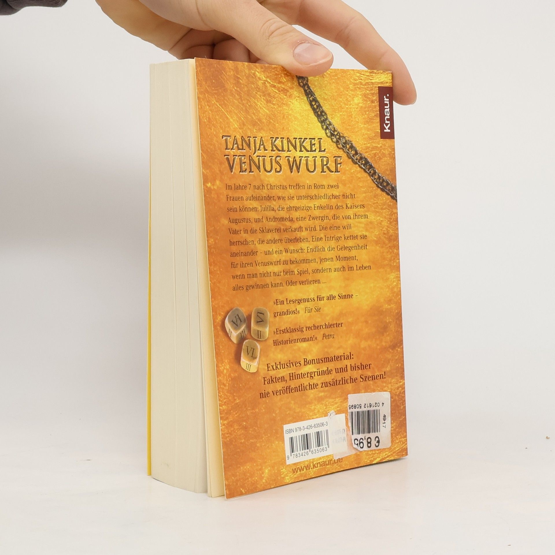 Das mächtige Rom im Jahre sieben nach Christus. Zwei Frauen, wie sie unterschiedlicher nicht sein könnten: Julilla, die machthungrige Enkelin des Augustus, und Andromeda, eine Zwergin, die von ihrem Vater in die Sklaverei verkauft wurde. Die eine will herrschen. Die andere überleben. Eine Intrige kettet sie aneinander – und ein Wunsch: endlich die Gelegenheit für ihren Venuswurf zu bekommen, jenen Moment, wenn man nicht nur beim Spiel, sondern auch im Leben alles gewinnen kann. Oder verlieren …