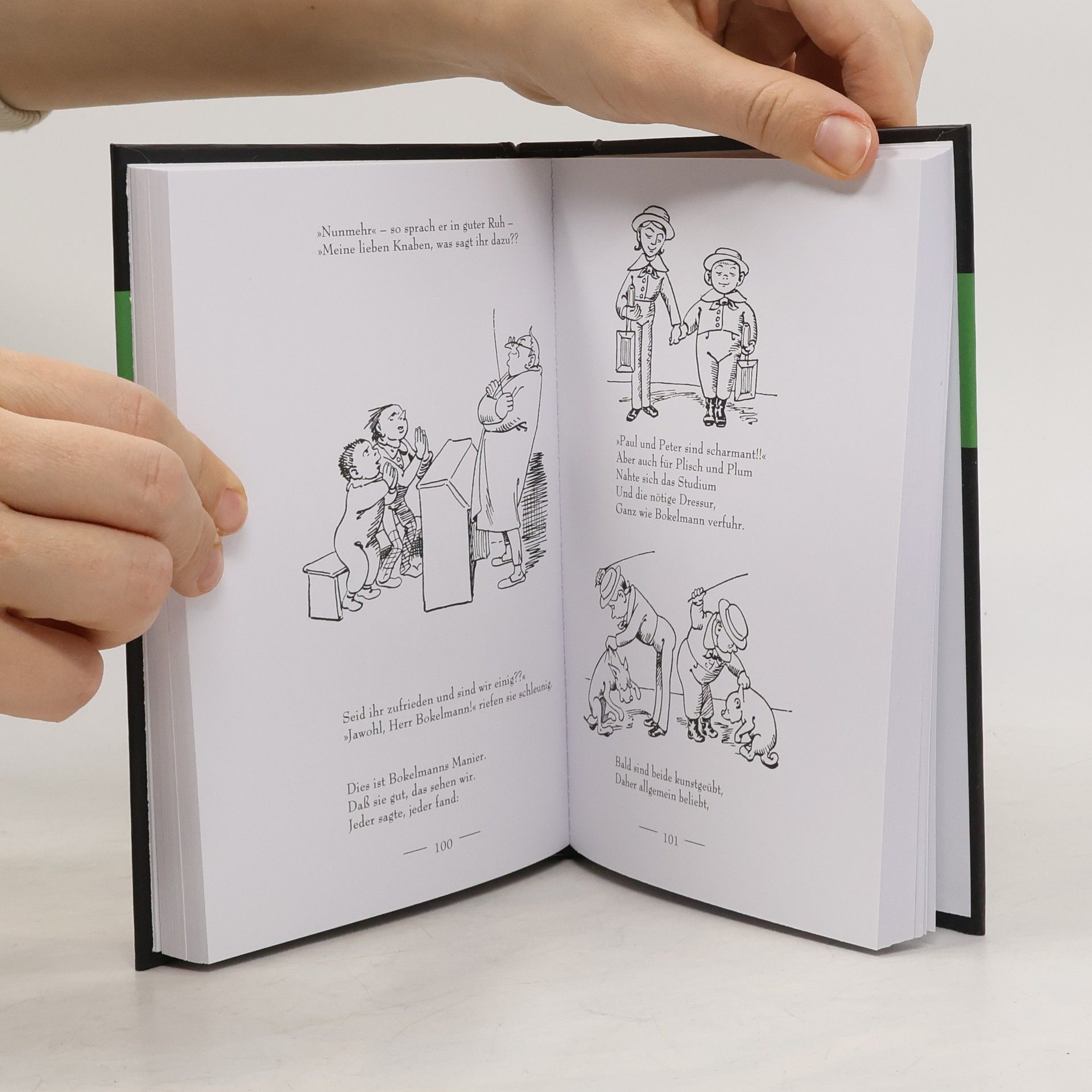 Dieser wunderschön illustrierte Band enthält die Geschichten: „Hans Huckebein“, „Der Wurstdieb“, „Plisch und Plum“, „Der unverschämte Igel“, „Max und Moritz“, „Das BAd am Samstagabend“, „Der Schreihals“