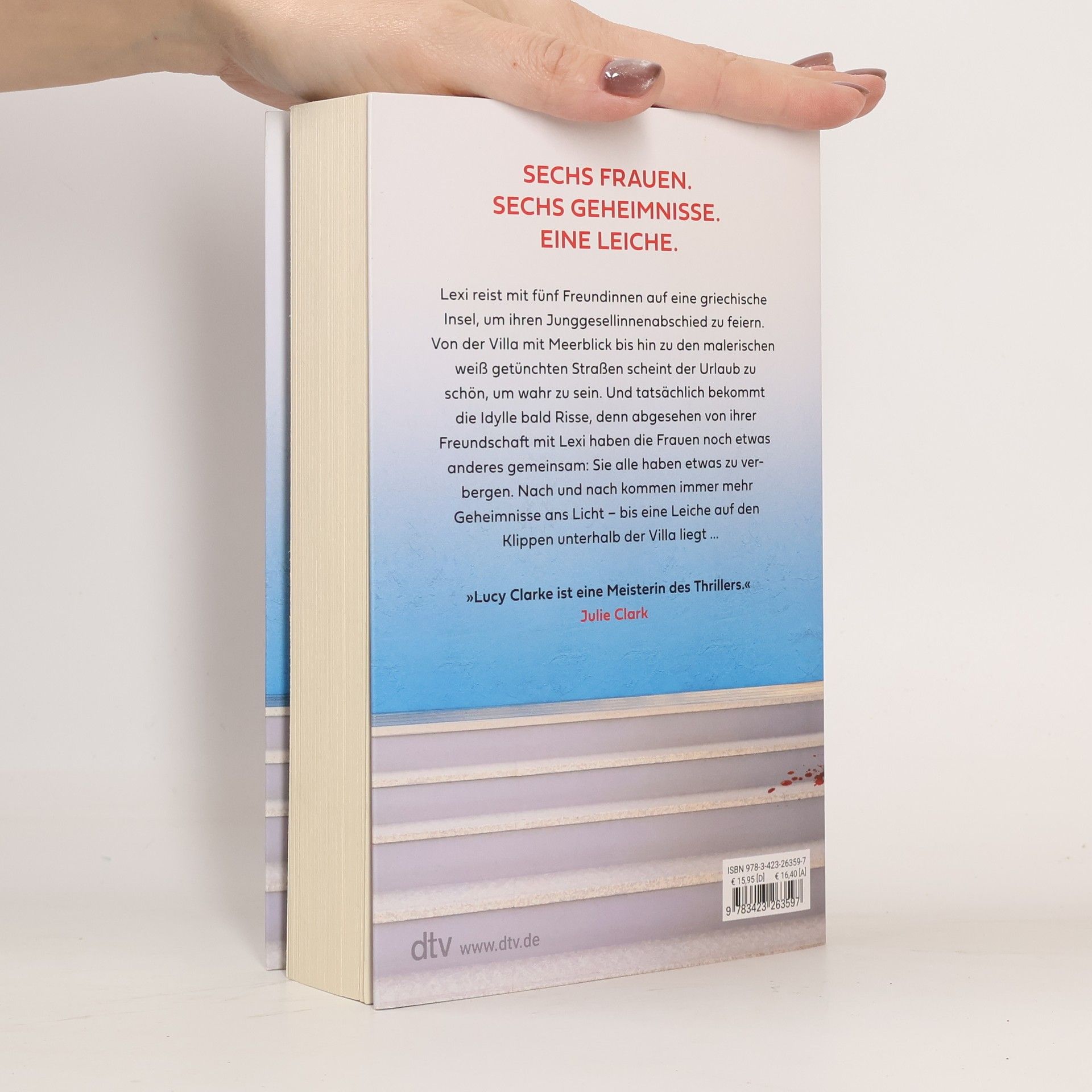 Sechs Frauen. Sechs Geheimnisse. Eine Leiche. Es sollte der perfekte Kurzurlaub werden: Lexi reist mit fünf Freundinnen auf eine griechische Insel, um ihren Junggesellinnenabschied zu feiern. Von der abgelegenen Villa mit Meerblick bis hin zu den malerischen Tavernen und weiß getünchten Straßen scheint der Urlaub zu schön, um wahr zu sein. Und tatsächlich bekommt die Idylle bald Risse, denn abgesehen von ihrer Freundschaft mit Lexi haben die Frauen nur eines gemeinsam: Sie alle haben etwas zu verbergen. Nach und nach kommen versteckte Absichten ans Licht, Geheimnisse werden enthüllt und die Masken fallen – bis eine Leiche auf den Klippen unterhalb der Villa liegt…