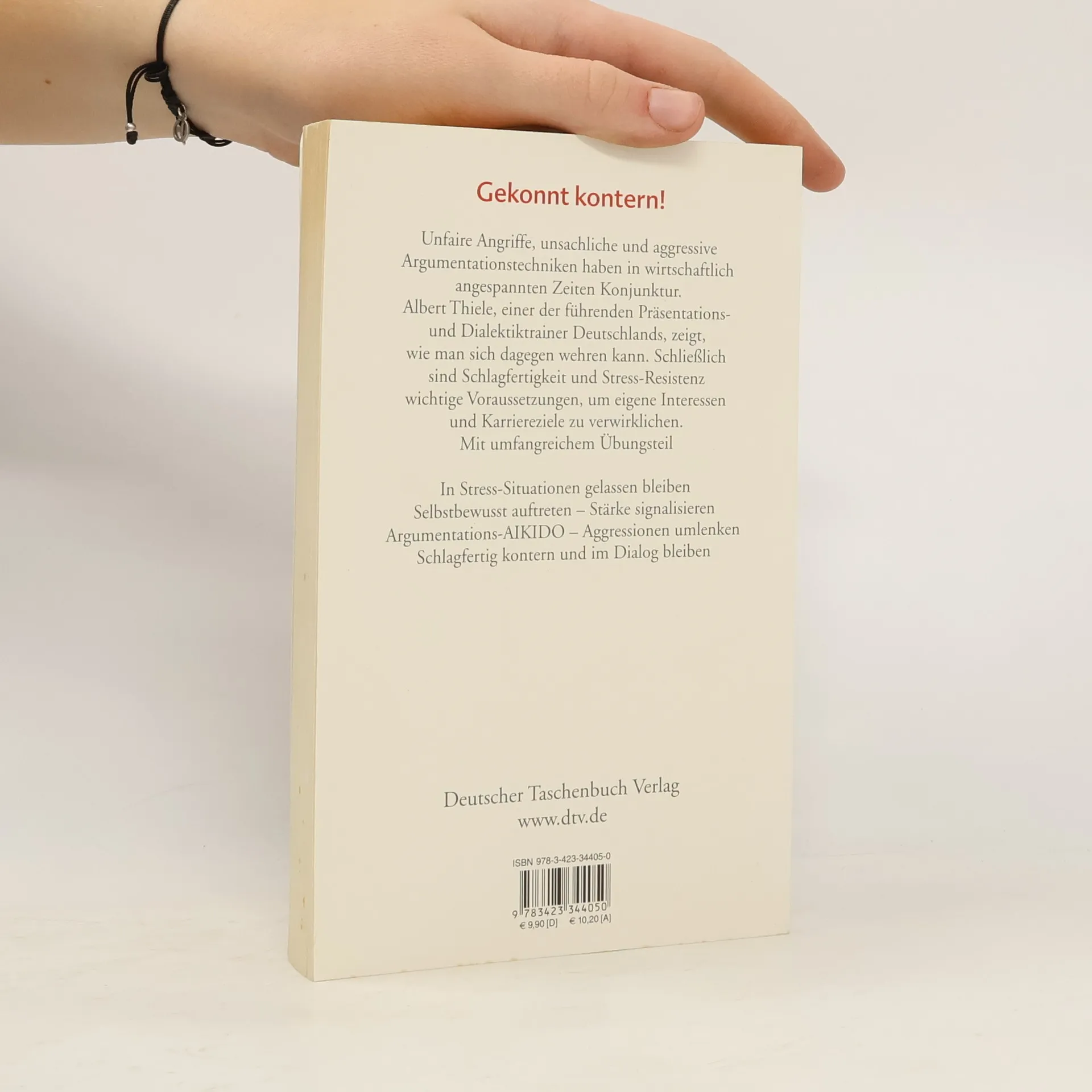 Gekonnt kontern! Offene oder verdeckte Angriffe, haltlose Behauptungen, emotional aufgeladene Debatten, Sticheleien, Polemik: Gerade in wirtschaftlich angespannten Zeiten haben aggressive und unsachliche Argumentationstechniken Konjunktur. Albert Thiele zeigt, wie man sich dagegen wehren kann, ohne in die gleichen Verhaltensmuster zu verfallen. Darüber hinaus sensibilisiert er für subtile und verdeckte Machtspiele, einschließlich so genannter »Dirty Tricks«, die der Einschüchterung dienen. Im Zentrum steht die Frage, wie man unsachliche Spielarten früh erkennt, geschickt abwehrt und das Heft des Handelns auf die eigene Seite bekommt. Schließlich schaffen professionelle Dialektik, Schlagfertigkeit und Stressresistenz günstige Voraussetzungen, um eigene Interessen und Karriereziele zu verwirklichen.Mit umfangreichem Übungsteil zu Reaktionsmöglichkeiten und den besten Abwehrstrategien in Stresssituationen.