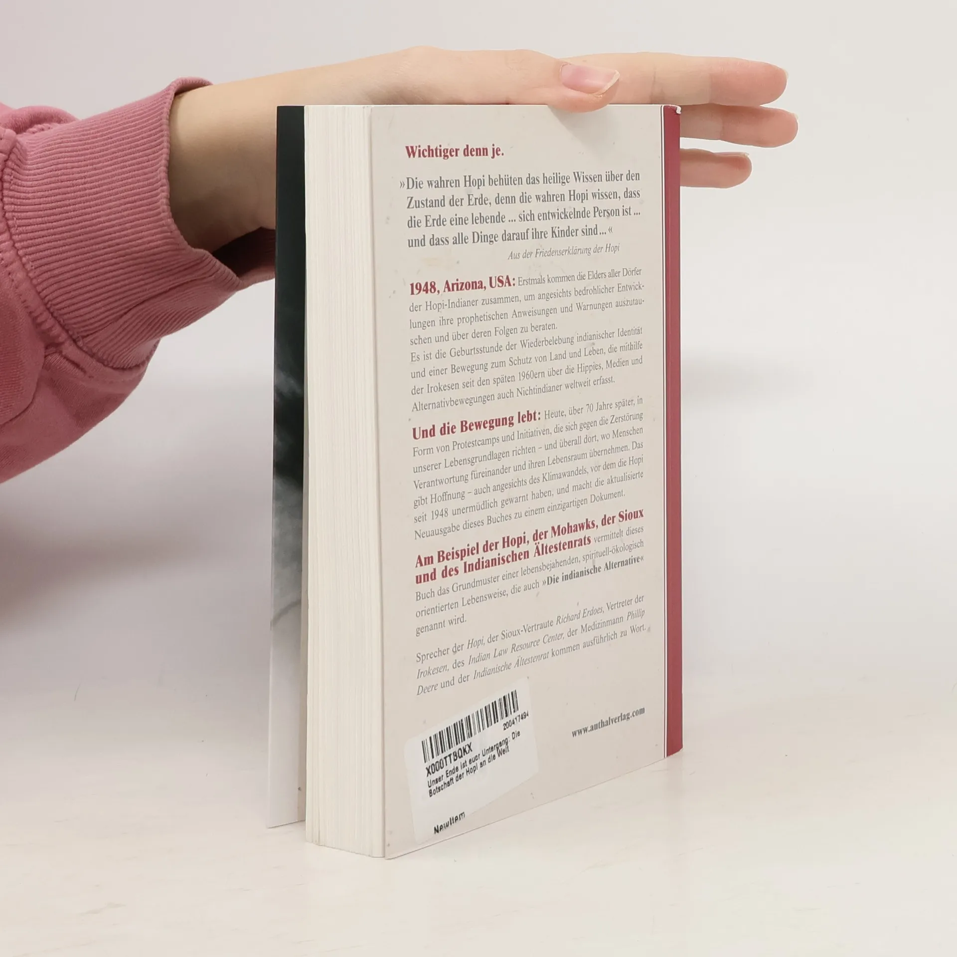 Wichtiger denn je. Die wahren Hopi bewahren das heilige Wissen über den Zustand der Erde, die sie als lebendige, sich entwickelnde Person betrachten, deren Kinder alle Dinge sind. 1948 kamen die Elders aller Hopi-Dörfer zusammen, um angesichts bedrohlicher Entwicklungen ihre prophetischen Anweisungen und Warnungen auszutauschen. Dies markierte den Beginn der Wiederbelebung indianischer Identität und einer Bewegung zum Schutz von Land und Leben, die seit den späten 60ern mithilfe der Irokesen auch Nichtindianer weltweit erfasst hat. Diese Bewegung lebt weiter: Über 70 Jahre später manifestiert sie sich in Protestcamps und Initiativen gegen die Zerstörung unserer Lebensgrundlagen, wo Menschen Verantwortung füreinander und ihren Lebensraum übernehmen. Dies gibt Hoffnung, besonders angesichts des Klimawandels, vor dem die Hopi seit 1948 unermüdlich warnen. Die aktualisierte Neuausgabe dieses Buches ist ein einzigartiges Dokument. Anhand der Hopi, Mohawks, Sioux und des Indianischen Ältestenrats wird das Grundmuster einer lebensbejahenden, spirituell-ökologisch orientierten Lebensweise vermittelt, auch bekannt als die indianische Alternative. Sprecher der Hopi, Sioux-Vertraute Richard Erdoes, Vertreter der Irokesen, des Indian Law Resource Center, Medizinmann Phillip Deere und der Indianische Ältestenrat kommen ausführlich zu Wort.