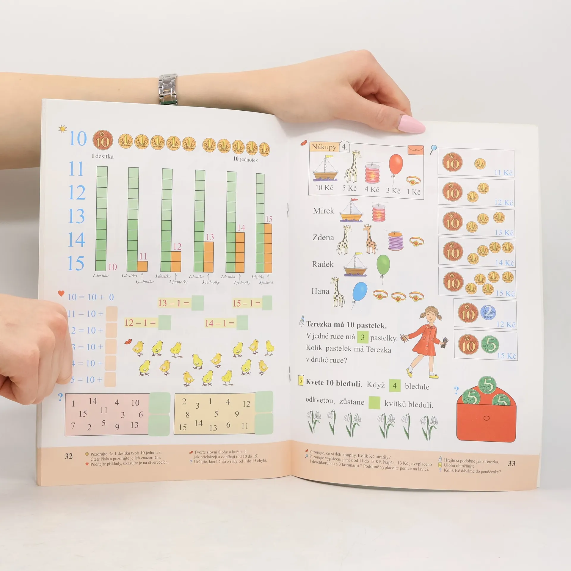 Učebnice je připravena pro výuku matematiky v číselném oboru do 20. Učivo se nejprve na několika úlohách motivuje a připraví. Potom se na úlohách řešených žáky procvičí. Úlohy vychází ze situací, které popisují děj, jehož jsou děti přímými účastníky. Následně, při činnostech s počítanými předměty nebo jejich obrazy, dospívají žáci k novým poznatkům často sami.