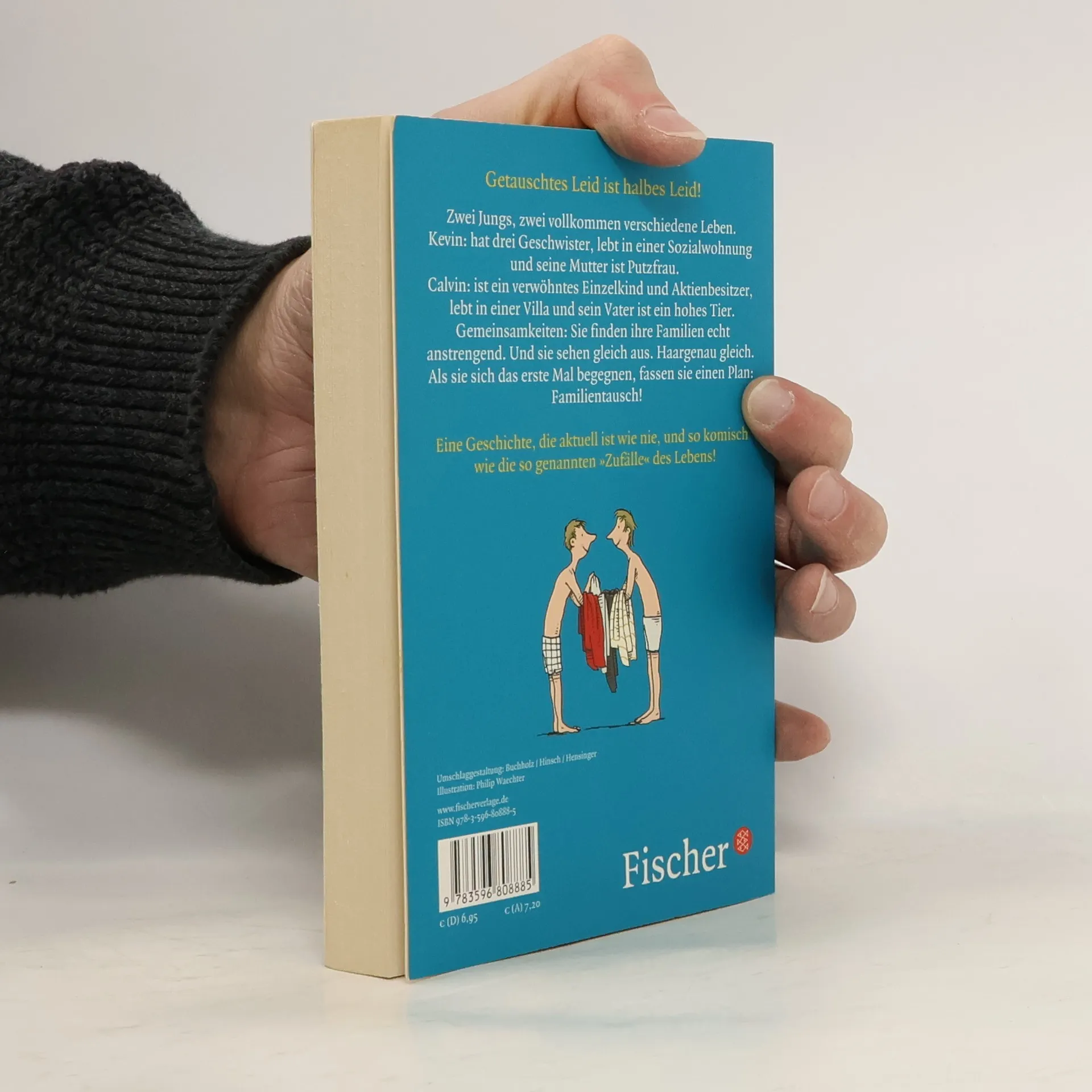 Zwei Jungs, zwei vollkommen verschiedene Leben. Kevin: hat drei Geschwister, lebt in einer Sozialwohnung und seine Mutter ist Putzfrau. Calvin: hat Aktien, ist ein verwöhntes Einzelkind, er lebt in einer Villa und sein Vater ist ein hohes Tier. Gemeinsamkeiten: Sie finden ihre Familien echt anstrengend. Und sie sehen gleich aus. Haargenau gleich. Als sie sich das erste Mal begegnen, fassen die beiden einen Plan: Familientausch! Eine Geschichte, die aktuell ist wie nie und so komisch wie die so genannten »Zufälle« des Lebens!