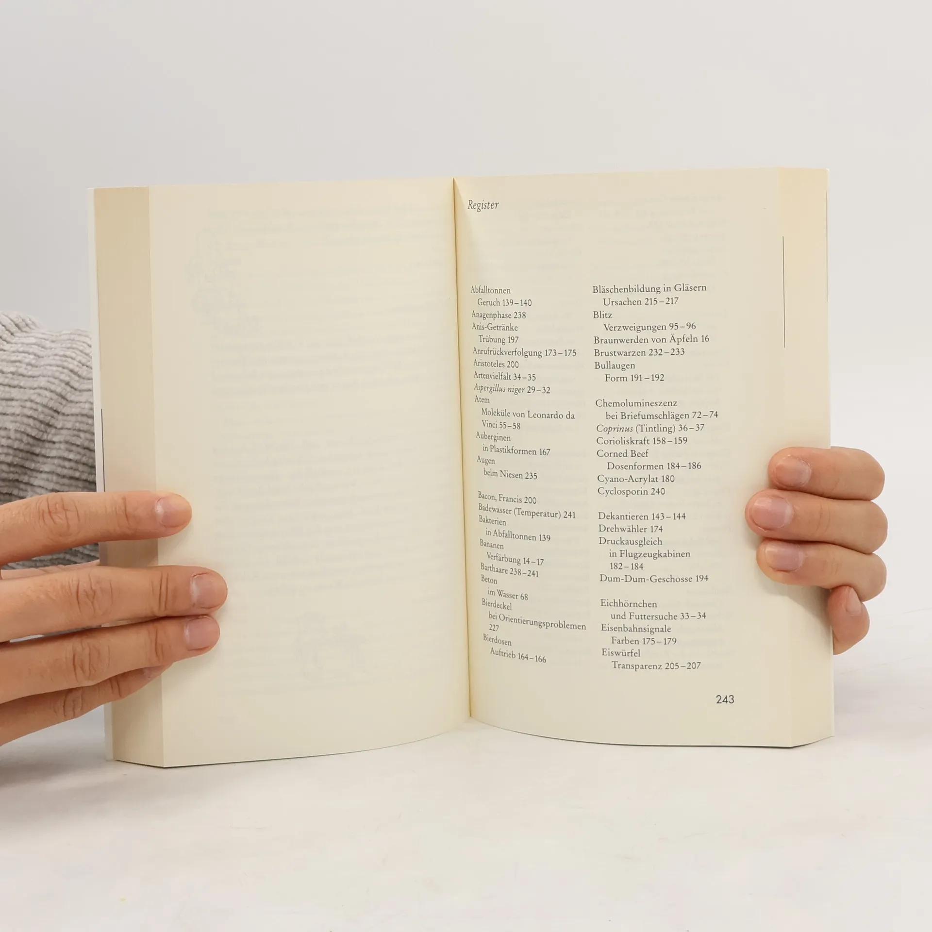 Haben Sie etwa schon einmal einen schlafenden Vogel vom Baum fallen sehen? Und was macht eine Mücke bei einem wirklich schweren Wolkenbruch? Warum ist der Himmel blau? Und wieso sind Eier eiförmig? Für Neugierige und Interessierte hat die berühmte englische Zeitschrift 'New Scientist' eine Kolumne eingerichtet. Dort antworten Leser auf Leserfragen aus aller Welt. Die schönsten, skurrilsten und hintergründigsten Fragen und Antworten sind hier versammelt. Staunen und lernen Sie! 'Warum fallen schlafende Bäume nicht vom Baum?' und 'Was macht die Mücke bei Wolkenbruch?' in einem Band