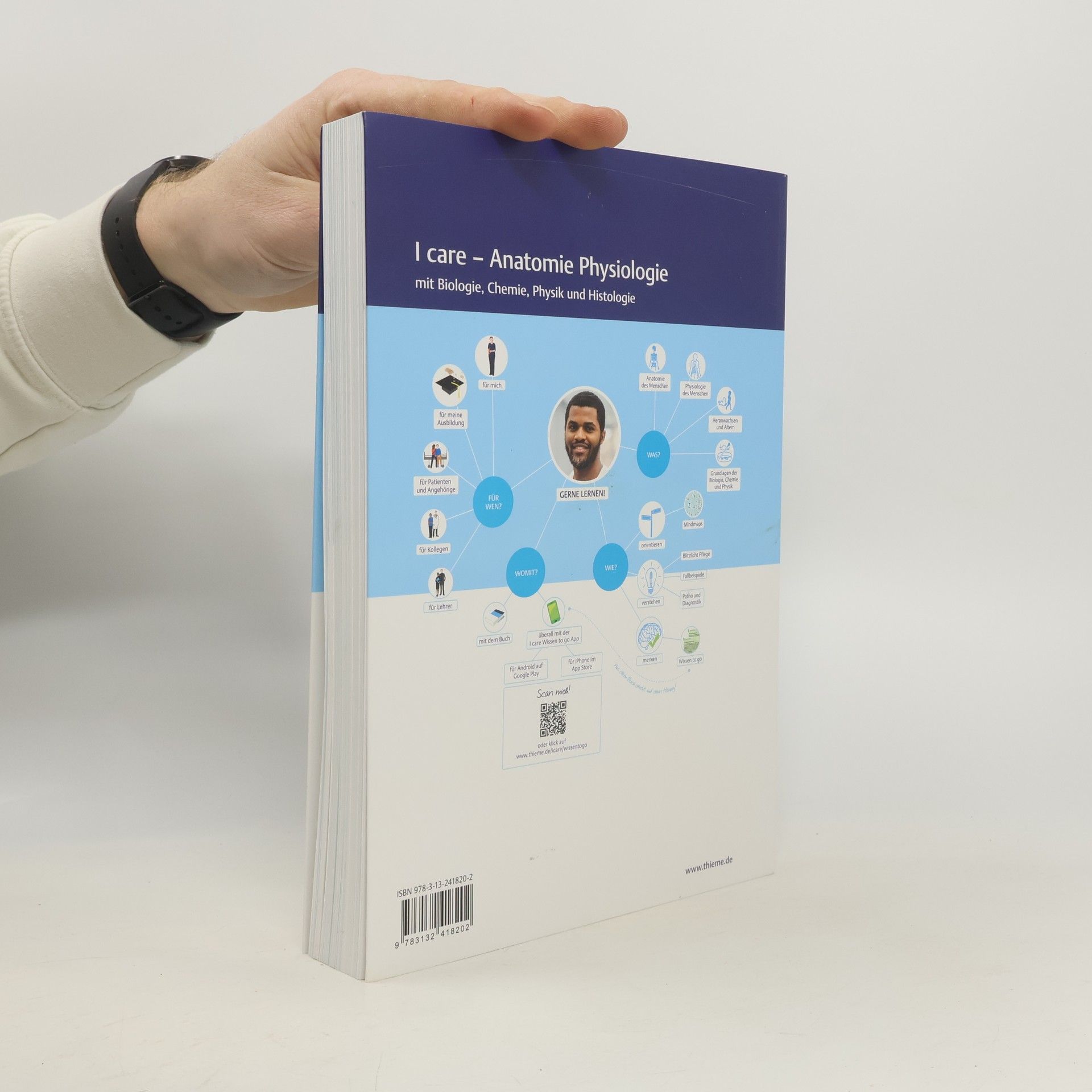 Mit I care legst du den Grundstein für deine generalistische Pflegeausbildung und startest optimal in deinen neuen Lebensabschnitt. Das interaktive und vernetzte Pflegewissen wird dir auf deinem Weg zur Pflegefachfrau oder zum Pflegefachmann vermittelt. Du lernst die Grundlagen der Anatomie und Physiologie, unterstützt durch detaillierte Grafiken, und hast Zugang zu digitalen Inhalten auf icare.thieme.de. Mindmaps zu Beginn der Kapitel helfen dir, die Themen schnell zu erfassen, während Infografiken komplexe Sachverhalte verständlich machen. Das Buch ist aus deiner Perspektive geschrieben und bietet wichtige Zusammenhänge zwischen Anatomie, Krankheit und Pflege. WISSEN TO GO Kästen fassen die Lerninhalte kompakt zusammen, und die kostenlose App unterstützt dich beim Lernen mit interaktiven Funktionen. Praxisnahe Fallbeispiele verdeutlichen, wie Krankheiten die Körperfunktionen beeinflussen, und Lernkontrollfragen helfen dir, das Wissen zu reflektieren. Die Themen umfassen Grundlagen der Anatomie, Physiologie, Biologie und die Entwicklung vom Neugeborenen bis zum alten Menschen. I care bietet dir eine verständliche Lernerfahrung, die die Anforderungen der Ausbildungs- und Prüfungsverordnung sowie des Pflegeberufegesetzes integriert. Die drei Bände sind grafisch und inhaltlich aufeinander abgestimmt und bieten eine optimale Vorbereitung auf den Pflegealltag und Prüfungen. Die Inhalte wurden in Zusammenarbeit mit Experten aus