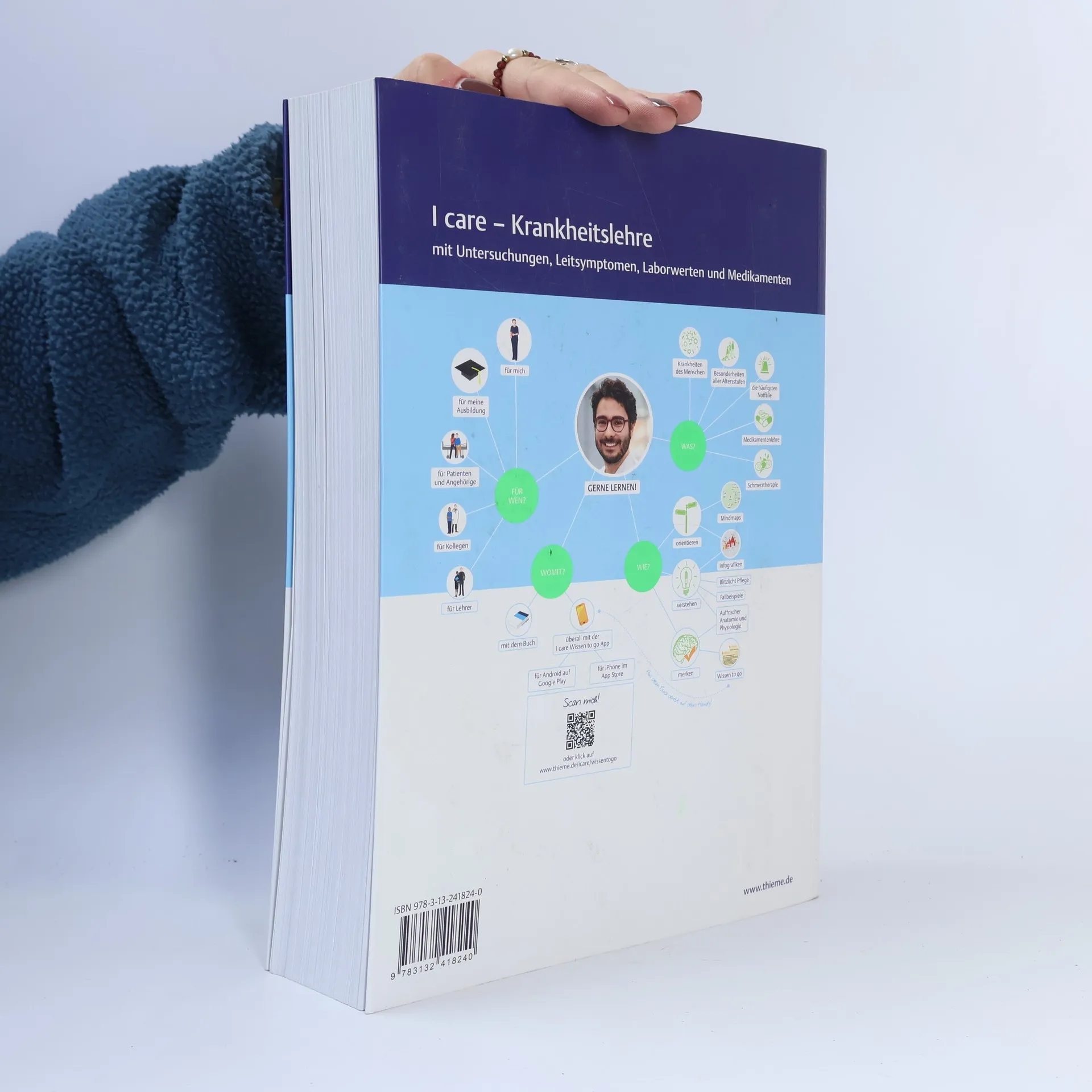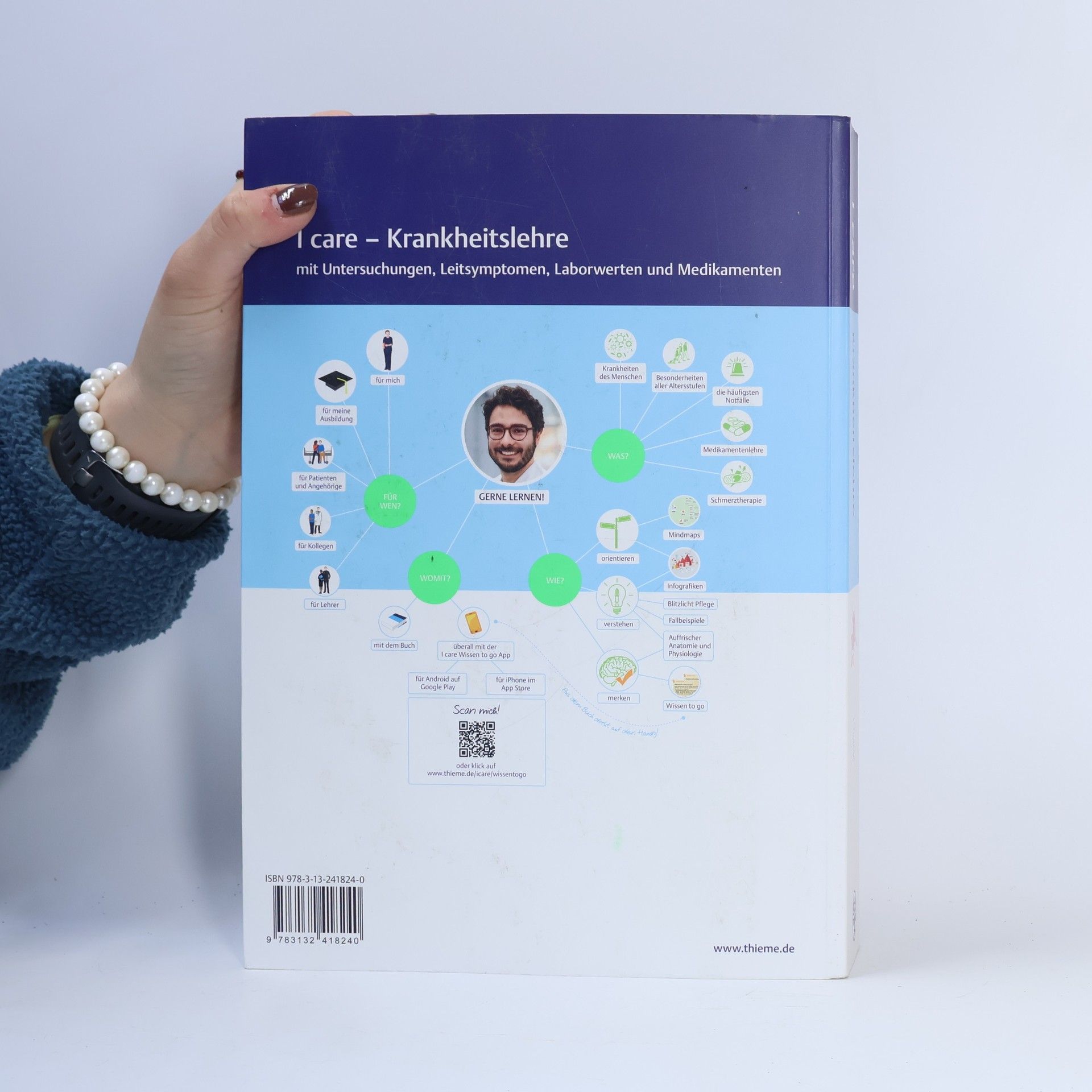 Mit I care legst du den Grundstein für deine generalistische Pflegeausbildung und startest gut vorbereitet in einen neuen Lebensabschnitt. Das interaktive und vernetzte Pflegewissen wird dir auf dem Weg zur Pflegefachfrau oder zum Pflegefachmann vermittelt. Du lernst die Zusammenhänge zwischen Körper und Krankheit kennen und kannst aktiv in interdisziplinären Teams mitwirken. Die digitale Plattform icare.thieme.de bietet dir zusätzlichen Zugang zu relevanten medizinischen Inhalten ohne Zusatzkosten. Mindmaps am Kapitelanfang helfen dir, dich schnell zu orientieren, während doppelseitige Infografiken komplexe Krankheitsbilder anschaulich darstellen. Die Inhalte sind aus deiner Perspektive strukturiert und decken alles von Pathophysiologie über Symptome bis hin zu Therapie und pflegerischen Informationen ab. WISSEN TO GO Kästen fassen die Lerninhalte kompakt zusammen, und die kostenlose App unterstützt dein Lernen mobil. Praxisnahe Fallbeispiele und Lernkontrollfragen erleichtern den Wissenstransfer in den Alltag. Die Themen umfassen Grundlagen der Gesundheits- und Krankheitslehre, organübergreifende Erkrankungen sowie spezifische Krankheitsbilder mit Definitionen und Therapieansätzen. I care bietet dir eine umfassende Vorbereitung auf den Pflegealltag und die Prüfungen, unterstützt durch Expertenwissen und abgestimmte Inhalte der drei Bände Pflege, Krankheitslehre sowie Anatomie und Physiologie.