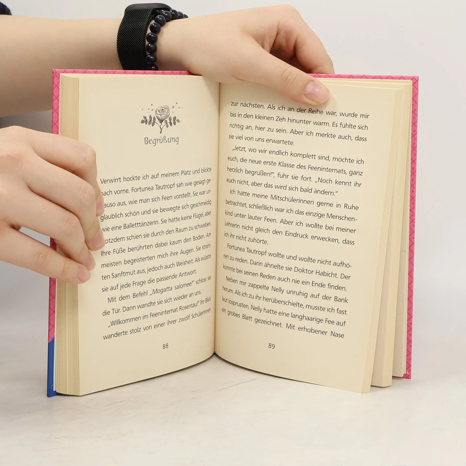 An ihrem neunten Geburtstag passiert Amanda Birnbaum etwas Durch einen magischen Spiegel gelangt sie in die Feenwelt und darf von nun an als einziges Menschenkind das Feeninternat Rosentau besuchen! Statt Mathe und Deutsch stehen Unsichtbarmachen, Feenschrift und Wünsche erfüllen auf dem Stundenplan. Und im schuleigenen Reitstall warten echte Einhörner auf sie!