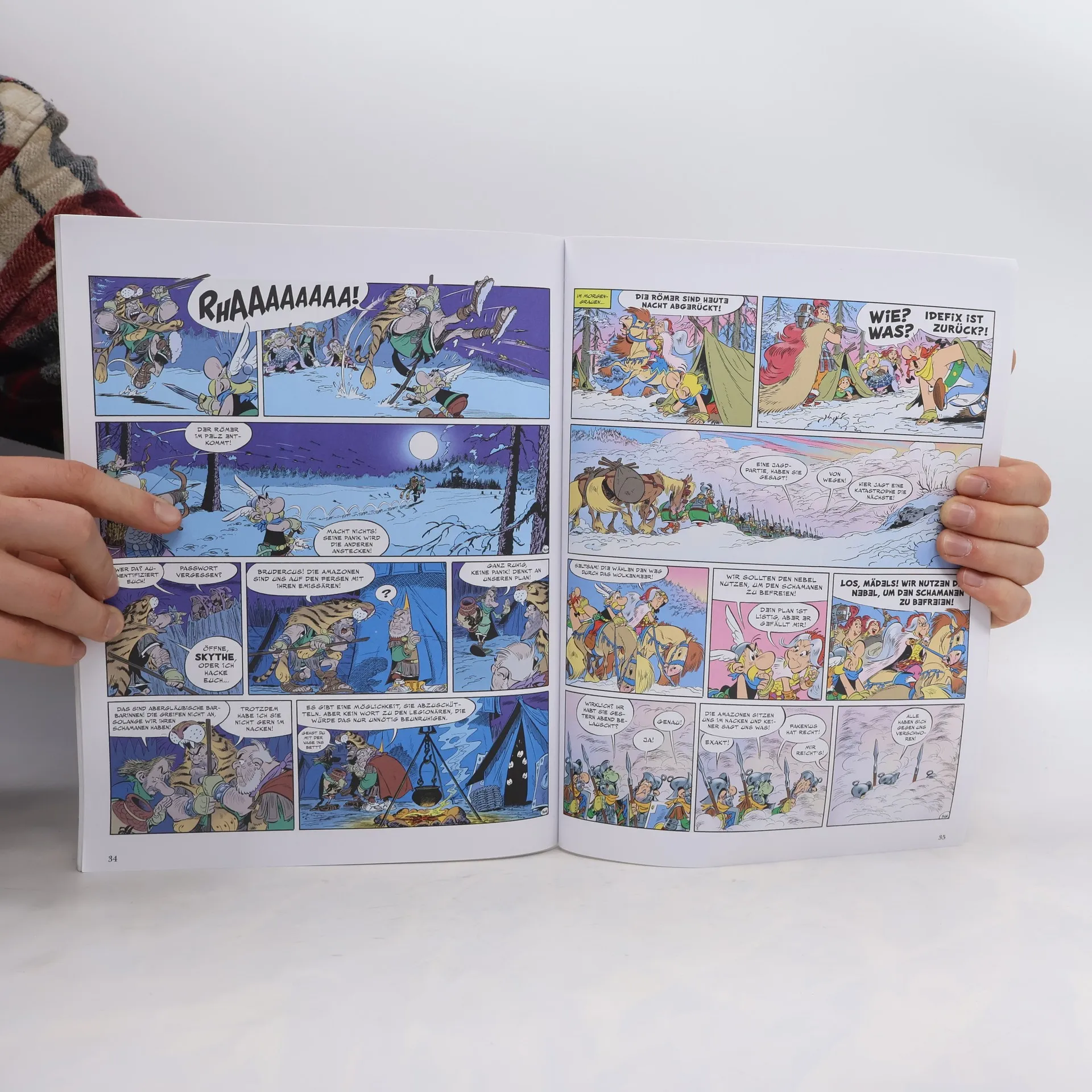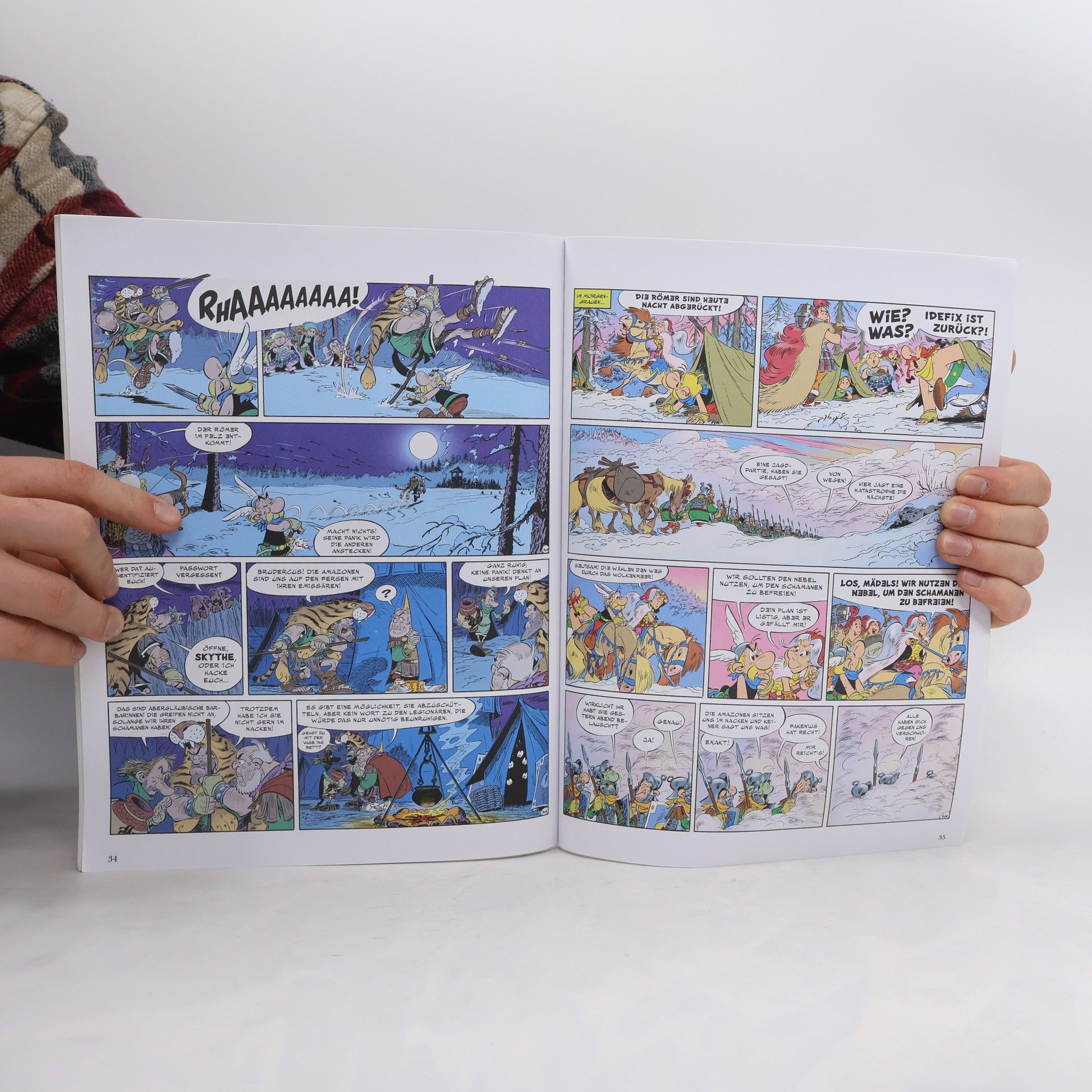 Mit „Asterix und der Greif“ legt das Duo Jean-Yves Ferri und Didier Conrad sein fünftes gemeinsames Asterix-Album vor! Diesmal verschlägt es die Gallier ins Barbaricum, weit im wilden Osten. Nach einem verheißungsvollen Traum macht sich Miraculix mit Asterix, Obelix und Idefix auf die Reise ins Land der Sarmaten. Dort wohnt der Schamane Terrine mitsamt seinem Stamm und hat die Hilfe seines alten Freundes bitter nötig! Denn die Römer sind auf dem Vormarsch, um für Cäsar den sagenumwobenen Greif zu fangen, der in dieser Region hausen soll. Zu allem Übel ist in der eisigen Kälte der Taiga auch noch Miraculix‘ Zaubertrank gefroren und dadurch unbrauchbar geworden…