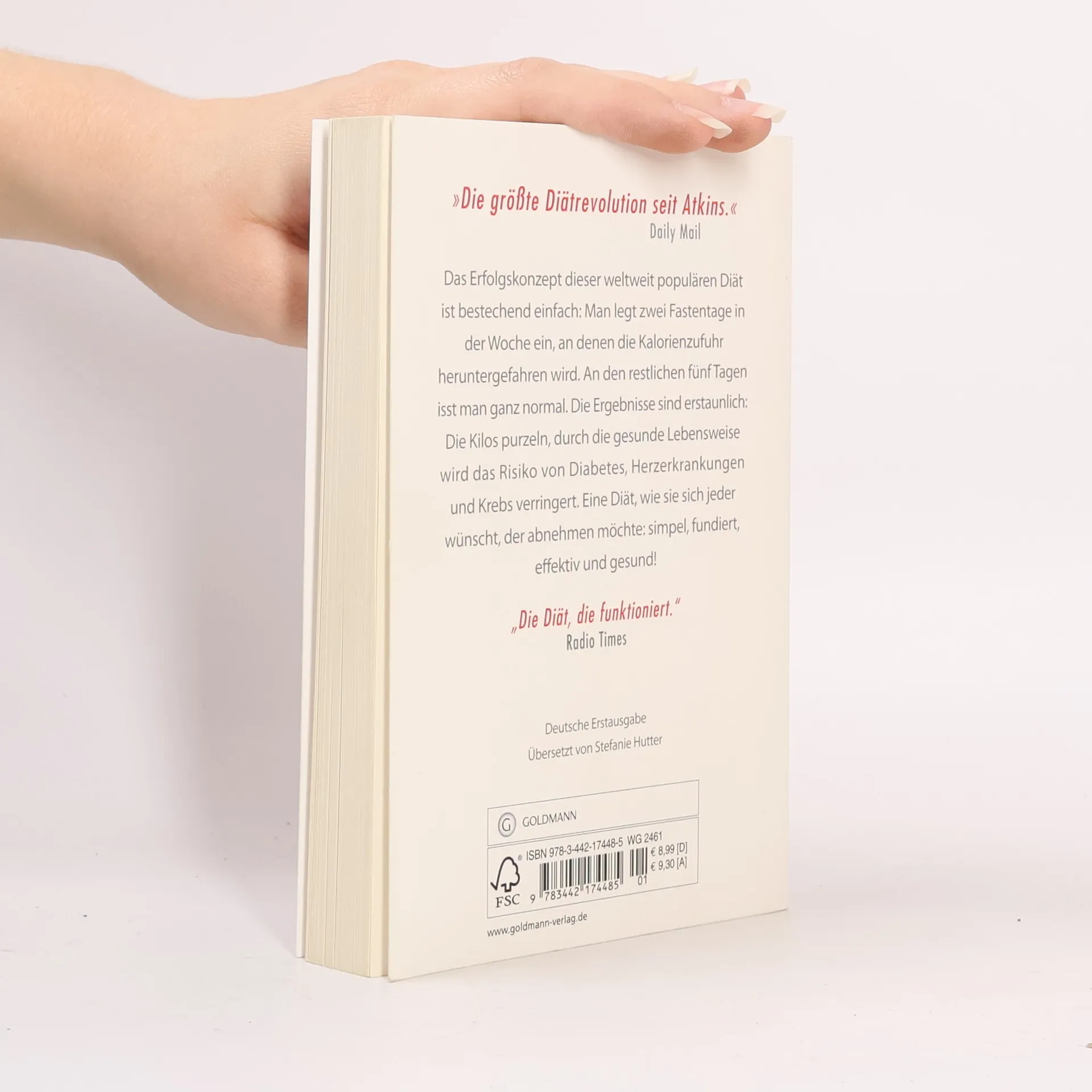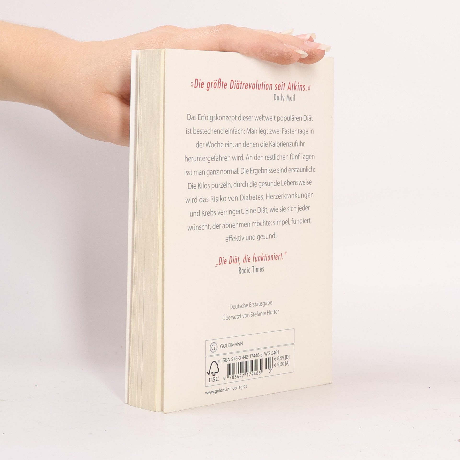 Der Megatrend der 5:2-Diäten sorgt in England bereits ordentlich für Wirbel. „The Fast Diet“ ist das Buch, das den Hype auslöste - das Original. Das Konzept ist bestechend einfach: Man legt zwei Fastentage in der Woche ein, an denen die Kalorienzufuhr heruntergefahren wird. An den restlichen fünf Tagen isst man ganz normal. Die Ergebnisse sind erstaunlich: Die Kilos purzeln, durch die gesunde Lebensweise wird das Risiko von Diabetes, Herzerkrankungen und Krebs verringert. Eine Diät, wie sie sich jeder wünscht, der abnehmen möchte: simpel, fundiert, effektiv und gesund!