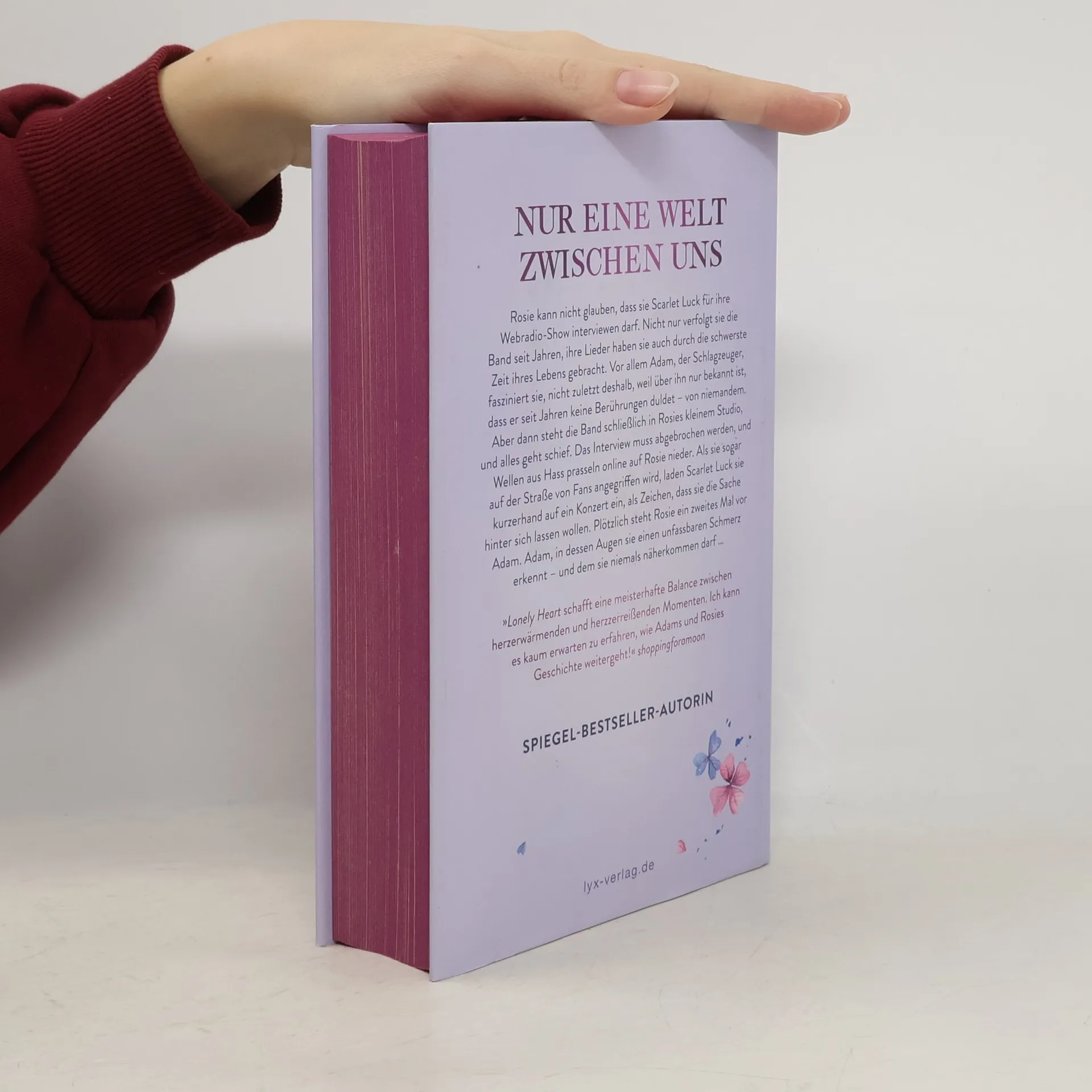 Nur eine Welt zwischen uns Rosie kann nicht glauben, dass sie Scarlet Luck für ihre Webradio-Show interviewen darf. Nicht nur verfolgt sie die Band seit Jahren, ihre Lieder haben sie auch durch die schwerste Zeit ihres Lebens gebracht. Vor allem Adam, der Schlagzeuger, fasziniert sie, nicht zuletzt deshalb, weil über ihn nur bekannt ist, dass er seit Jahren keine Berührungen duldet - von niemandem. Aber dann steht die Band schließlich in Rosies kleinem Studio, und alles geht schief. Das Interview muss abgebrochen werden, und Wellen aus Hass prasseln online auf Rosie nieder. Als sie sogar auf der Straße von Fans angegriffen wird, laden Scarlet Luck sie kurzerhand auf ein Konzert ein, als Zeichen, dass sie die Sache hinter sich lassen wollen. Plötzlich steht Rosie ein zweites Mal vor Adam. Adam, in dessen Augen sie einen unfassbaren Schmerz erkennt - und dem sie niemals näherkommen darf ... „ LONELY HEART schafft eine meisterhafte Balance zwischen herzerwärmenden und herzzerreißenden Momenten. Ich kann es kaum erwarten zu erfahren, wie Adams und Rosies Geschichte weitergeht!“ SHOPPINGFORAMOON Der neue Roman von Platz-1- SPIEGEL -Bestseller-Autorin Mona Kasten