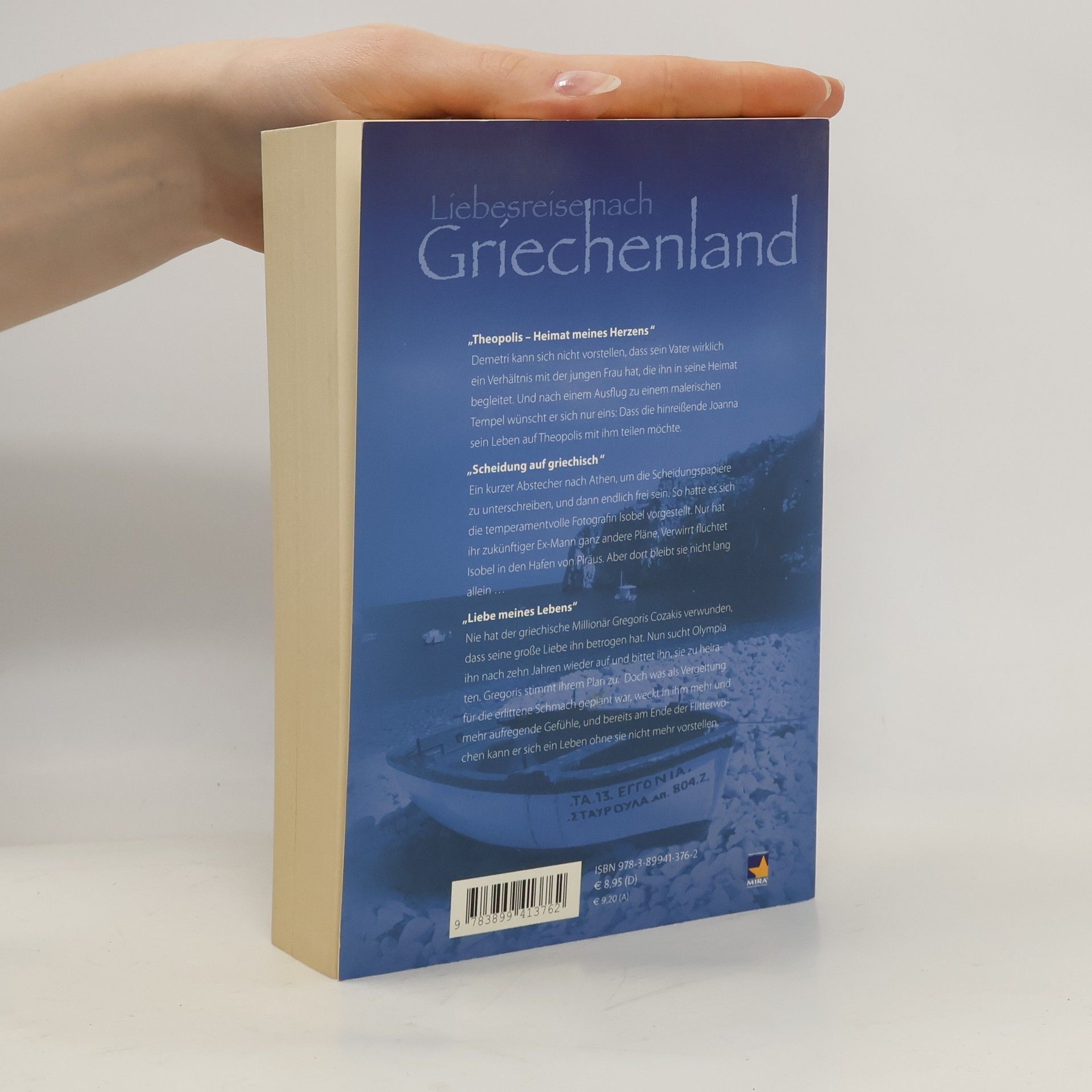1. Demetri kann sich nicht vorstellen, dass sein Vater wirklich ein Verhältnis mit der jungen Frau hat, die ihn in seine Heimat begleitet. Und nach einem Ausflug zu einem malerischen Tempel wünscht er sich nur eins: Das die hinreißende Joanna sein Leben auf Theopolis mit ihm teilen möchte.§2. "Scheidung auf griechisch": Ein kurzer Abstecher nach Athen, um die Scheidungspapiere zu unterschreiben, und dann endlich frei sein. So hatte es sich die temperamentvolle Fotografin Isobel vorgestellt. Nur hat ihr zukünftiger Ex-Mann ganz andere Pläne. Verwirrt flüchtet Isobel in den Hafen von Piräus. Aber dort bleibt sie nicht lang allein...§3. "Liebe meines Lebens": Nie hat der griechische Millionär Gregoris Cozakis verwunden, dass seine große Liebe ihn betrogen hat. Nun sucht Olympia ihn nach zehn Jahren wieder auf und bittet ihn, sie zu heiraten. Gregoris stimmt ihrem Plan zu. Doch was als Vergeltung für die erlittene Schmach geplant war, weckt in ihm mehr und mehr aufregende Gefühle, und bereits am Ende der Flitterwochen kann er sich ein Leben ohne sie nicht mehr vorstellen.