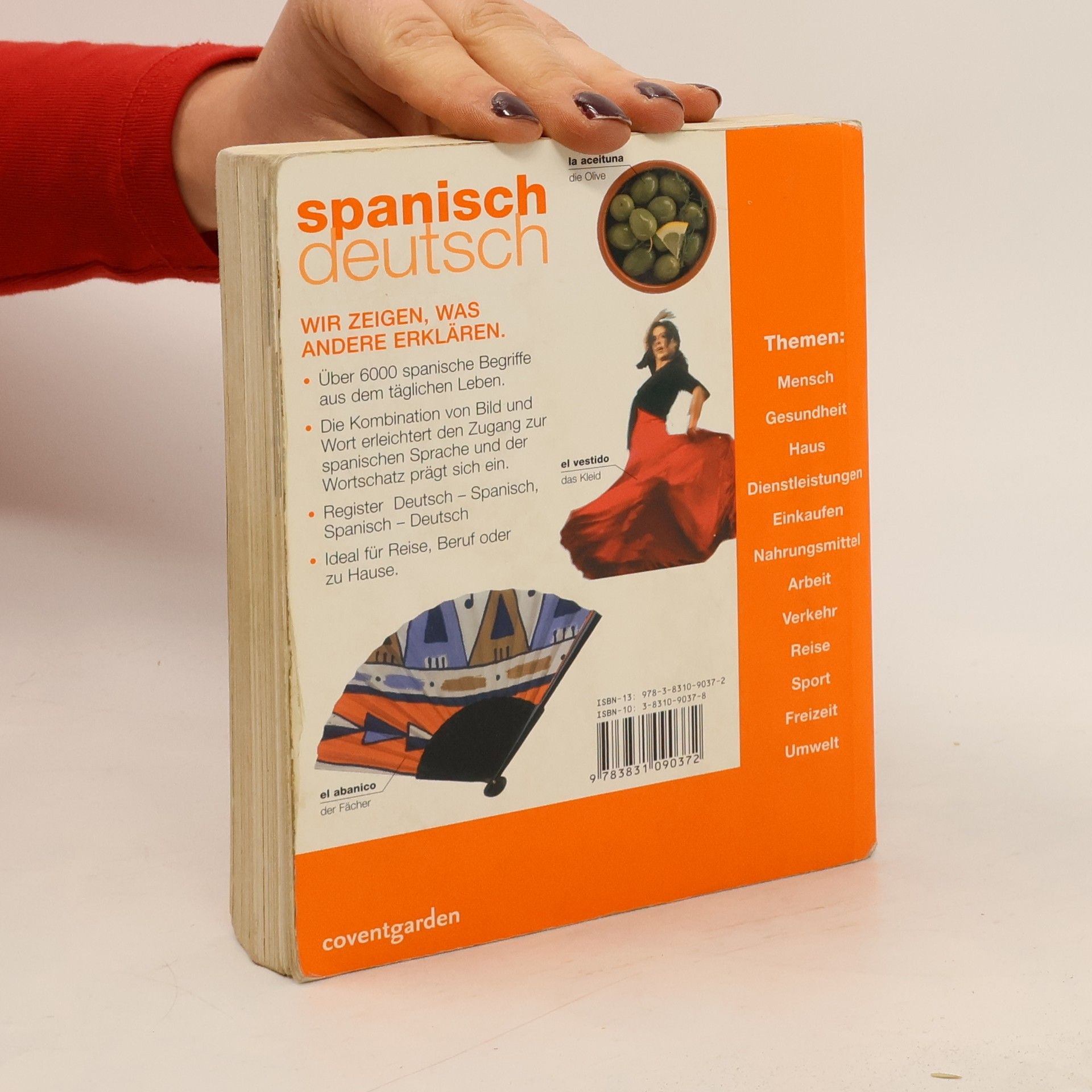 Das Bildwörterbuch besticht durch schöne Fotos. Obwohl das Buchformat im Hosentaschenbereich liegt, sind sie gestochen scharf und zeigen brillante Farben. Die Anordnung der Bilder und die zugehörige Beschriftung sind eindeutig und klar, sodass trotz der vielen Abbildungen eine gute Orientierung möglich ist. Die thematische Gliederung erleichtert darüber hinaus die Benutzung. Ergänzt wird das Buch durch eine Liste mit Wörtern und Redewendungen, die sich nicht im Bild darstellen lassen. Außerdem gibt es ein Register für beide Sprachen. Vor allem für Sprachlernende mit optischem Gedächtnis eine gute und unterhaltsame Möglichkeit, Vokabeln zu lernen. Kleine Schwächen, wie z. B. dieselbe Abbildung für 3 verschieden Fahrradtypen auf Seite 206 oder die beschränkte Darstellung von nationalen Spezialitäten - die Italienisch- und Französischausgabe haben genau dieselben Fotos -, trüben den guten Gesamteindruck ein wenig. Gute Ergänzung zum ”Pons-Bildwörterbuch Deutsch-Englisch-Französisch-Spanisch-Italienisch“ (BA 4/04). Auch aufgrund des günstigen Preises gerne empfohlen. (2)