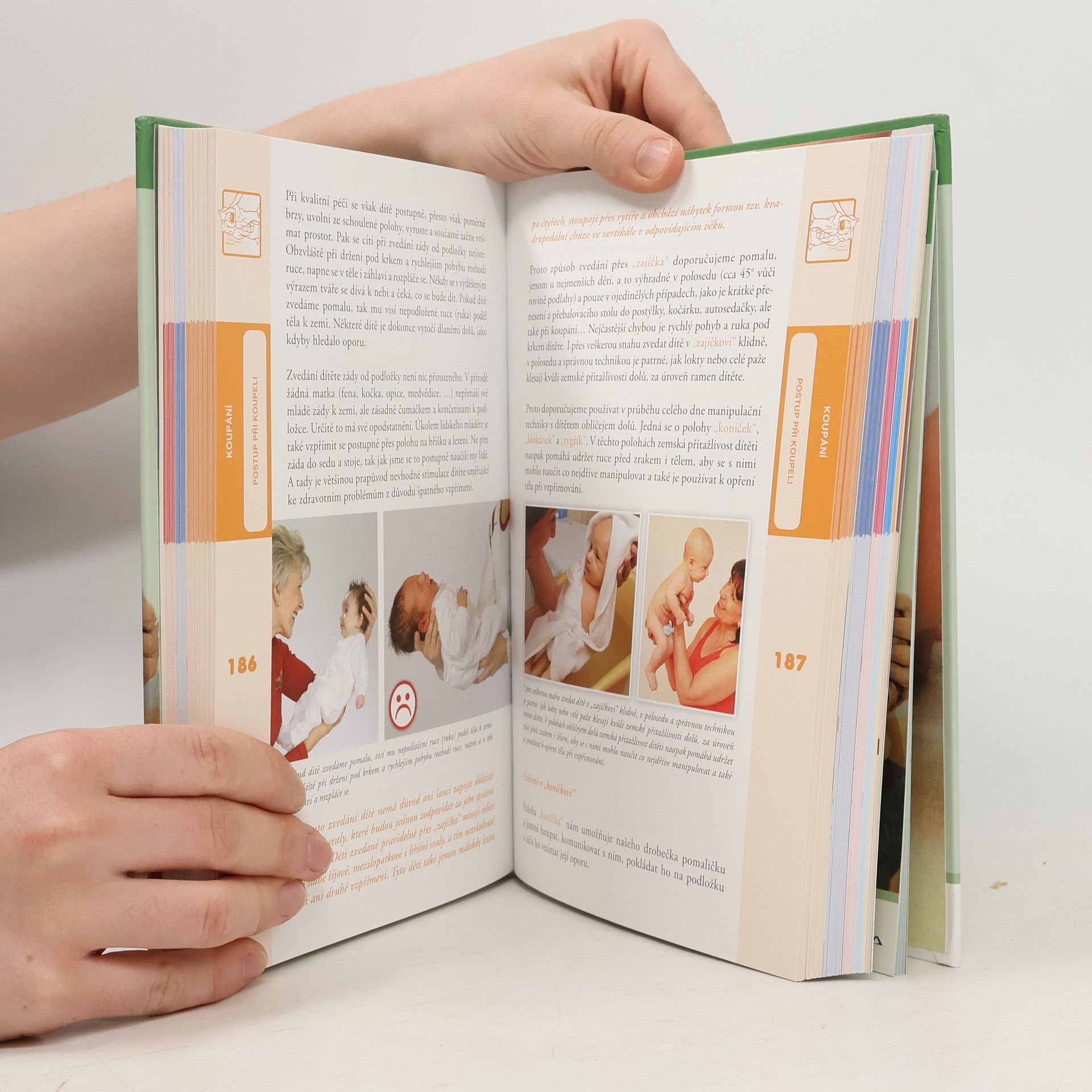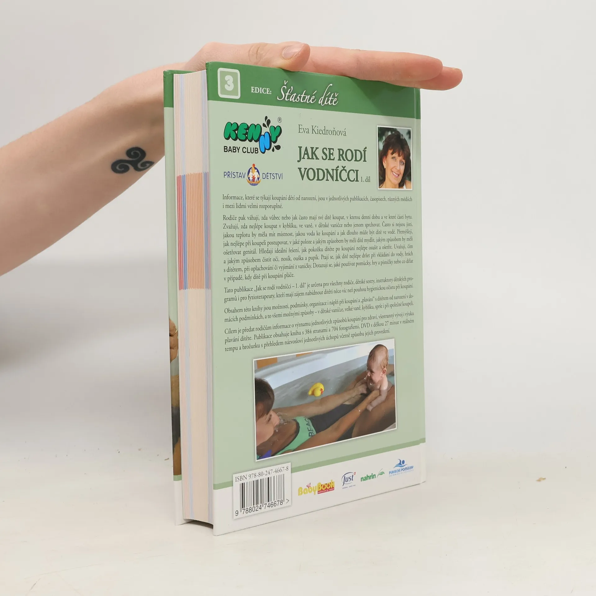 Kniha poskytuje informace, které se týkají koupání novorozenců a malých kojenců. Radí rodičům, zda vůbec nebo jak často mají své dítě koupat, v kterou denní dobu a v které části bytu, zda nejlépe koupat v kyblíku, ve vaně, v dětské vaničce nebo jenom sprchovat. Radí jakou teplotu by měla mít místnost, jakou voda ke koupání a jak dlouho může být dítě ve vodě. Zejména pak, jak nejlépe při koupeli postupovat, v jaké poloze a jakým způsobem by měli dítě mydlit, jakým způsobem by měli ošetřovat genitál, jak pokožku dítěte po koupání nejlépe osušit a ošetřit, jakým způsobem čistit oči, nosík, ouška a pupík. V knize se dozvíte jaké používat pomůcky, hry a písničky nebo co dělat v případě, kdy dítě při koupání pláče.