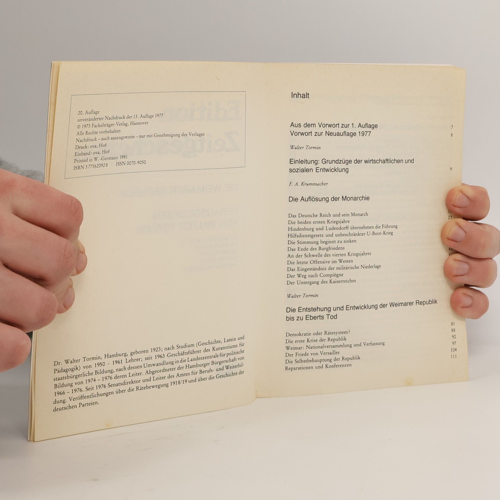 Die Weimarer Republik, Walter Tormin