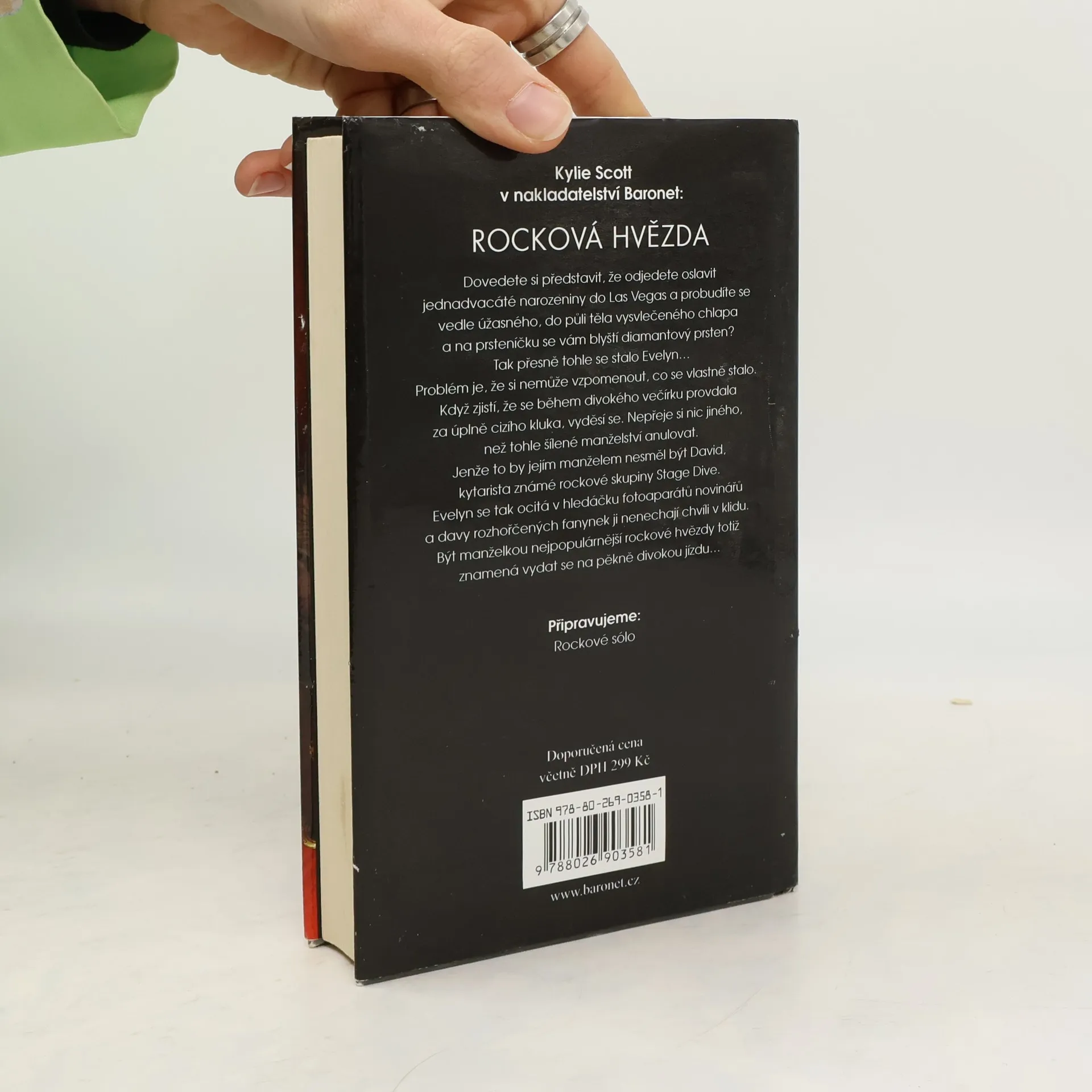 Dovedete si představit, že odjedete oslavit jednadvacáté narozeniny do Las Vegas a probudíte se vedle úžasného, do půli těla vysvlečeného chlapa a na prsteníčku se vám blyští diamantový prsten? Tak přesně tohle se stalo Evelyn… Problém je, že si nemůže vzpomenout, co se vlastně stalo. Když zjistí, že se během divokého večírku provdala za úplně cizího kluka, vyděsí se. Nepřeje si nic jiného, než tohle šílené manželství anulovat, jenže to by jejím manželem nesměl být David, kytarista oblíbené rockové skupiny Stage Dive. Evelyn se tak ocitá v hledáčku fotoaparátů novinářů a davy rozhořčených fanynek ji nenechají chvíli v klidu. Být manželkou nejpopulárnější rockové hvězdy totiž znamená vydat se na pěkně divokou jízdu, jakou jim život připravil…