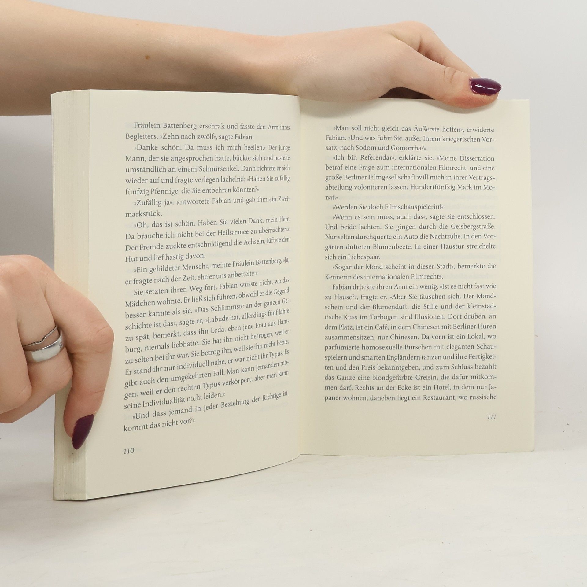 Dr. Jakob Fabian, Germanist und Reklametexter, lässt sich durch das Berlin der »Goldenen Zwanziger« treiben. Er wirft sich in erotische Abenteuer, trinkt mit Journalisten um die Wette und versucht, im Labyrinth der Großstadt seine Integrität und seine Ideale zu behaupten. Doch die Stadt windet sich wie in einem Fiebertraum; die junge Demokratie der Weimarer Republik wird mehr und mehr in ihren Grundfesten erschüttert. Dann lernt Fabian im Atelier einer Bildhauerin, wo sich leichte Mädchen und Todeskandidaten ein Stelldichein geben, die junge Juristin Cornelia kennen. Die beiden verlieben sich – doch die Liebe hat keine Konjunktur.