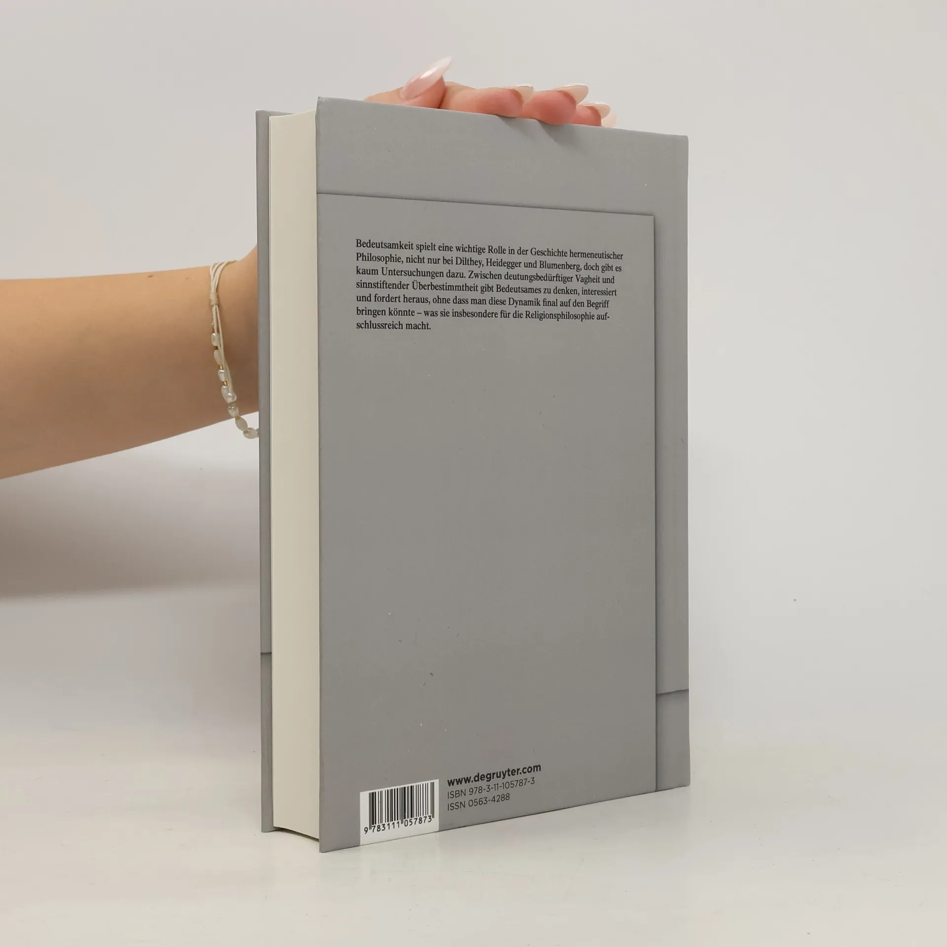 Mit "Bedeutsamkeit" wird eine deutungsbedürftige Vagheit, aber auch Sinnüberschuss verbunden, eine besondere Tiefe, Wichtigkeit oder Tragweite, die gefühlt oder erahnt wird. Doch wenn Bedeutsamkeit von Symbolen und Mythen im Anschluss an Kant als etwas verstanden wird, das "viel zu denken veranlasst" und der Einbildungskraft "einen Schwung verleiht", kann dies auf einen kulturellen, sozialen oder existentiellen Mehrwert verweisen, auch wenn dieser bestimmungslogisch als Vagheit erscheinen muss. Für die Religionstheorie ist der Begriff unverzichtbar, denn so sehr Religion auch Lebensdeutung sein mag, ist sie doch darauf angewiesen, dass die hervorgebrachten Deutungen ihre Bedeutsamkeit unter Beweis stellen. Im ersten Band der auf drei Bände angelegten Studien zum Begriff geht es vor allem um die Begriffsgeschichte (Herder, Fr. Creuzer, Dilthey, Rickert, Heidegger, Rothacker, Blumenberg u.a.), die bislang kaum untersucht wurde. In einem zweiten Schritt werden wichtige Phänomene der Bedeutsamkeit untersucht wie etwa der mit dem Aufstieg der Naturwissenschaften einhergehende "Verlust der Lebensbedeutsamkeit" (Husserl) oder das mystische Erleben, bei dem man umgekehrt von einer "Bedeutsamkeit ohne (bestimmte) Bedeutung" sprechen könnte.