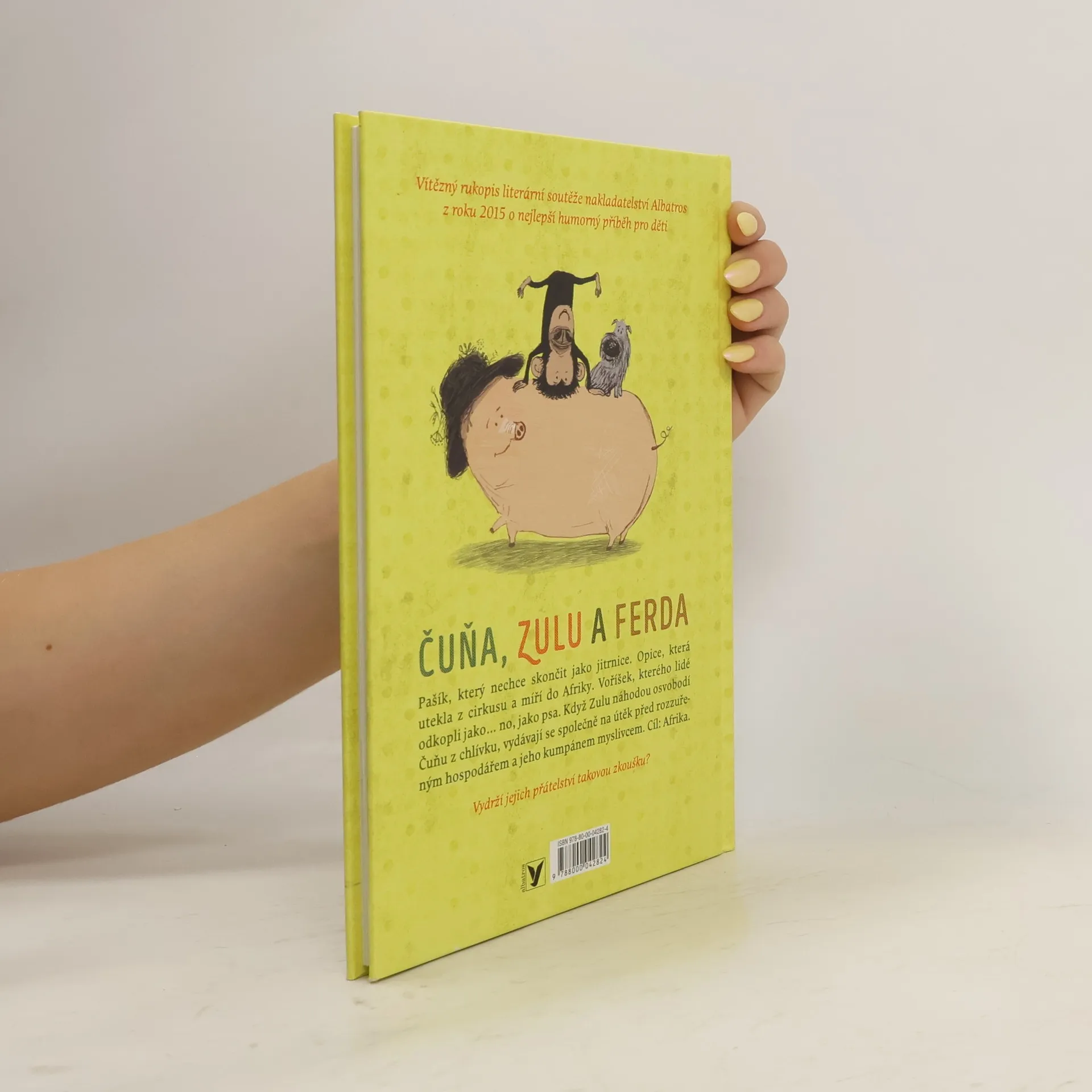 Vítězný rukopis literární soutěže nakladatelství Albatros z roku 2015 o nejlepší humorný příběh pro děti. Čuňa, Zulu a Ferda. Pašík, který nechce skončit jako jitrnice. Opice, která utekla z cirkusu a míří do Afriky. Jezevčík, kterého lidé odkopli jako… no, jako psa. Když Zulu náhodou osvobodí Čuňu z chlívku, vydávají se společně na útěk před rozzuřeným hospodářem a jeho kumpánem myslivcem. Cíl: Afrika. Vydrží jejich přátelství takovou zkoušku?