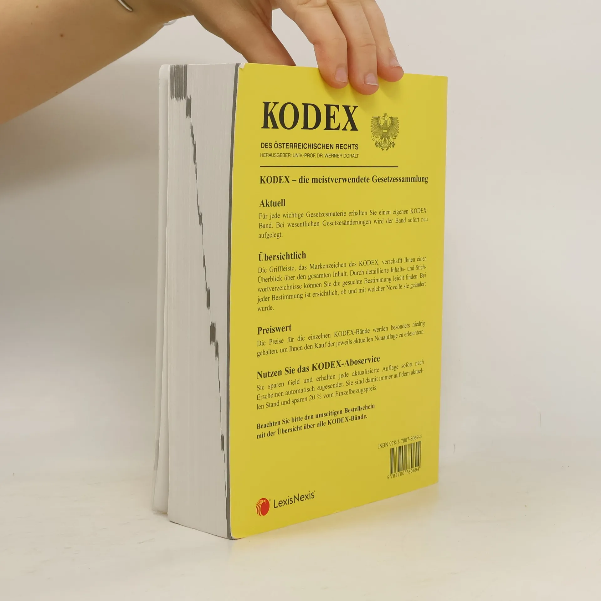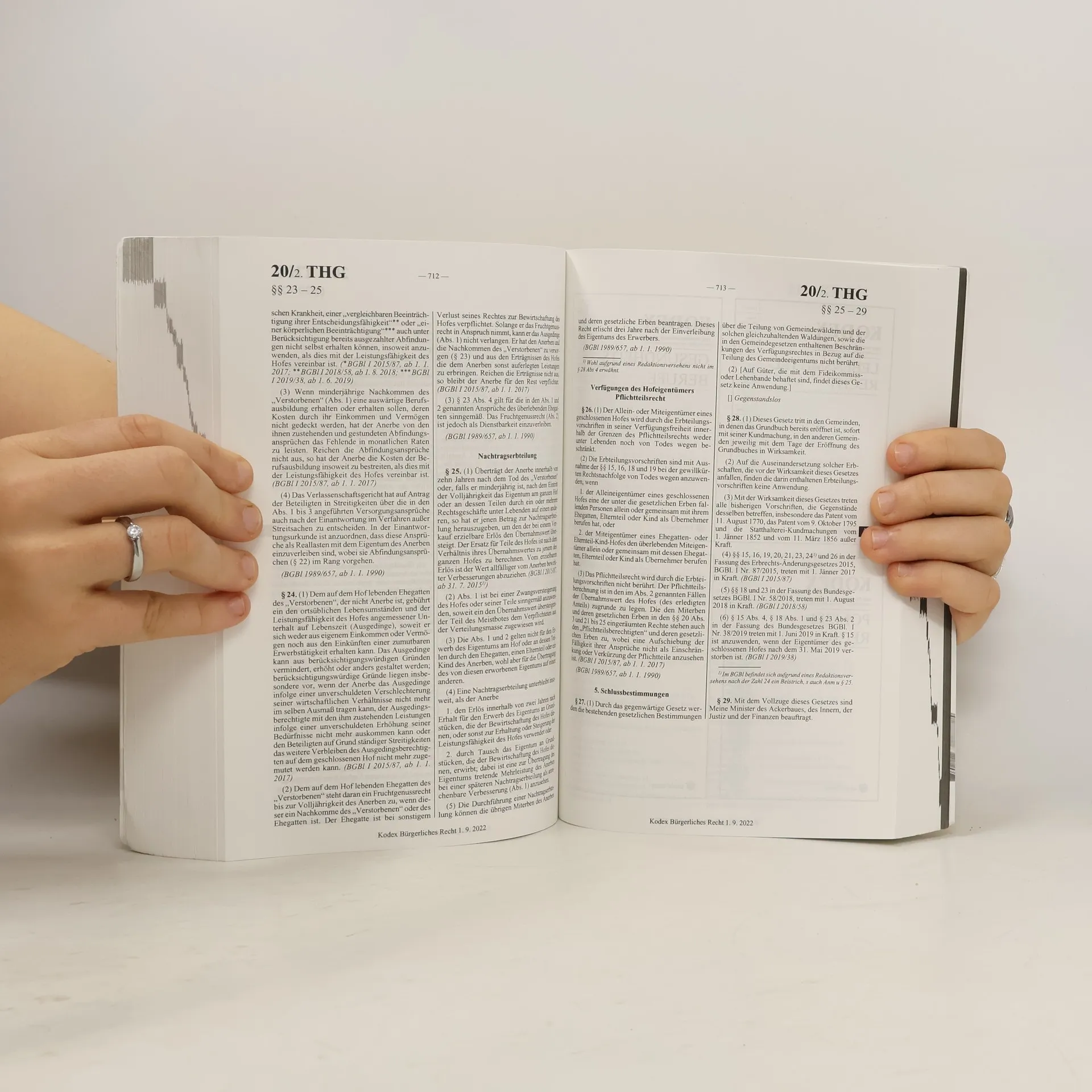 Die 29. Auflage des Kodex Bürgerliches Recht, gültig ab dem 1.9.2004, umfasst mehrere neue Gesetze und Änderungen. Dazu gehören das Familien- und Erbrechts-Änderungsgesetz (ab 1.1.2005), das Heimvertragsgesetz (ab 1.7.2004) und das Fern-Finanzdienstleistungs-Gesetz (ab 1.10.2004). Zudem sind Änderungen durch das Außerstreit-Begleitgesetz und das Wohnrechtliche Außerstreitbegleitgesetz (ab 1.1.2005) sowie die Überbuchungsverordnung (ab 17.2.2005) enthalten. Des Weiteren sind das Allgemeine bürgerliche Gesetzbuch (ABGB) mit dem Euro-JuBeG, das Allgemeine Grundbuchsgesetz (GBG) mit GUG, das Allgemeine Sozialversicherungsgesetz (ASVG), das Amtshaftungsgesetz (AHG) mit PolBEG und zahlreiche andere Gesetze aufgeführt. Dazu zählen das Anerbengesetz (AnerbG), das Angestelltengesetz (AngG), das Atomhaftungsgesetz (AtomHG), das Baurechtsgesetz (BauRG), das Dienstnehmerhaftpflichtgesetz (DHG), das E-Commerce-Gesetz (ECG) und das Ehegesetz (EheG). Außerdem sind Regelungen zur Eisenbahnenteignung, zur Haftpflicht im Eisenbahn- und Kraftfahrzeugbereich, zum Internationalen Privatrecht, zum Jugendwohlfahrtsgesetz, zum Konsumentenschutz sowie viele weitere relevante Gesetze und Vorschriften enthalten, die die rechtlichen Rahmenbedingungen in verschiedenen Lebensbereichen abdecken.