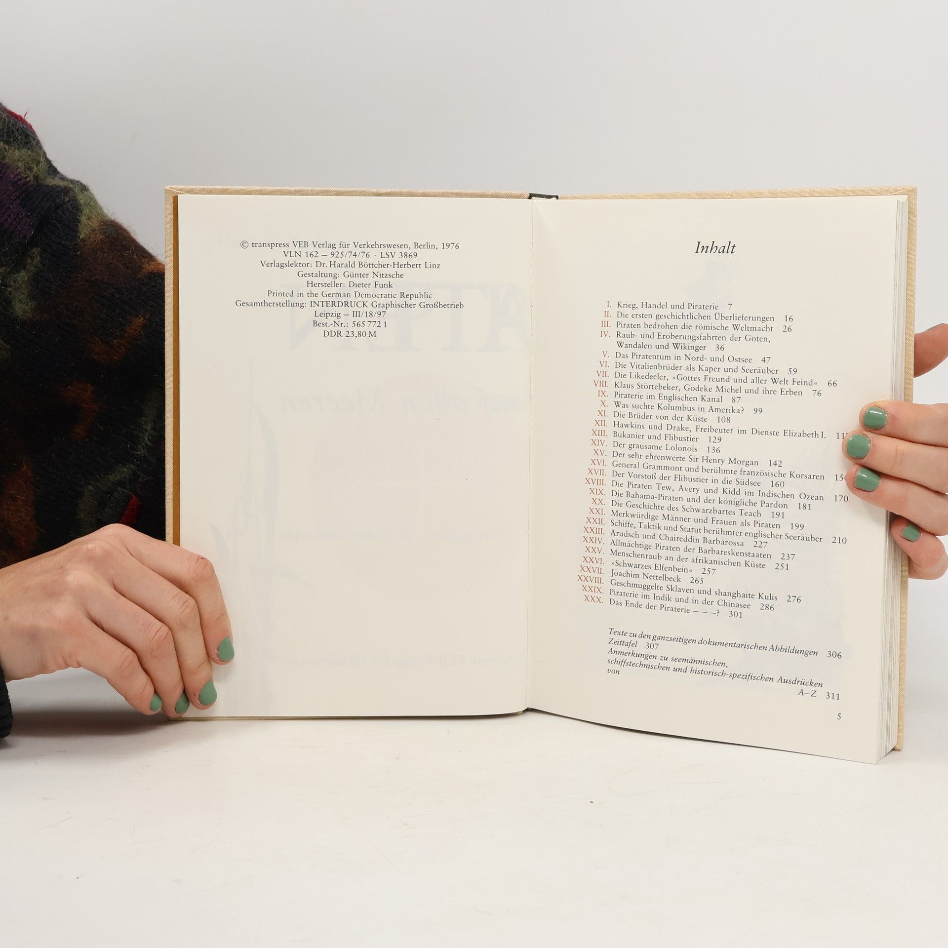 Schauplätze der Piraterie vom Altertum bis in die Neuzeit waren die Meere der ganzen Welt und die Küsten aller Kontinente. Zu den bevorzugten Jagdgebieten der Seeräuber gehörten die Knotenpunkte des Seeverkehrs, wie sie sich vor Meerengen und an Flußmengen bildeten. Vor allem das Mittelmeer, die Nord-und Ostseeküste, der englische Kanal, die karibische See, die Ostküste Nordamerikas, Die Küste Westafrikas, der Indische Ozean und die Chinasee waren Operationsfeld der Piraten, Korsaren und Freibeuter. Der Leser dieser Dokumentation wird gefesselt von einer Fülle auf zeitgenössische Quellen gestützter Informationen, durch die Darstellung des historischen Zusammenhangs zwischen Seehandel, Krieg, Piraterie und Sklavenfahrt und nicht zuletzt durch die aufregenden Geschichten vom lEben und Sterben berühmter Kaperkapitäne und berüchtigter Seeräuber. Alle " Großen " der Piraterie werden in diesem Buch noch einmal lebendig: Störtebeker und Michel, Hawkins und Drake, Lonois und Morgan, Grammont und Teach, Tew, Avery und Kidd, Prinz Koxinga und Madame Tsching. Zeitgenössische Dokumente und Karten sowie ergänzende Illustrationen von Gerhard Goßmann begleiten und bereichern den Text, der durch eine Zeittafel und alphabetisch geordnete Begriffserklärungen abgerundet wird.