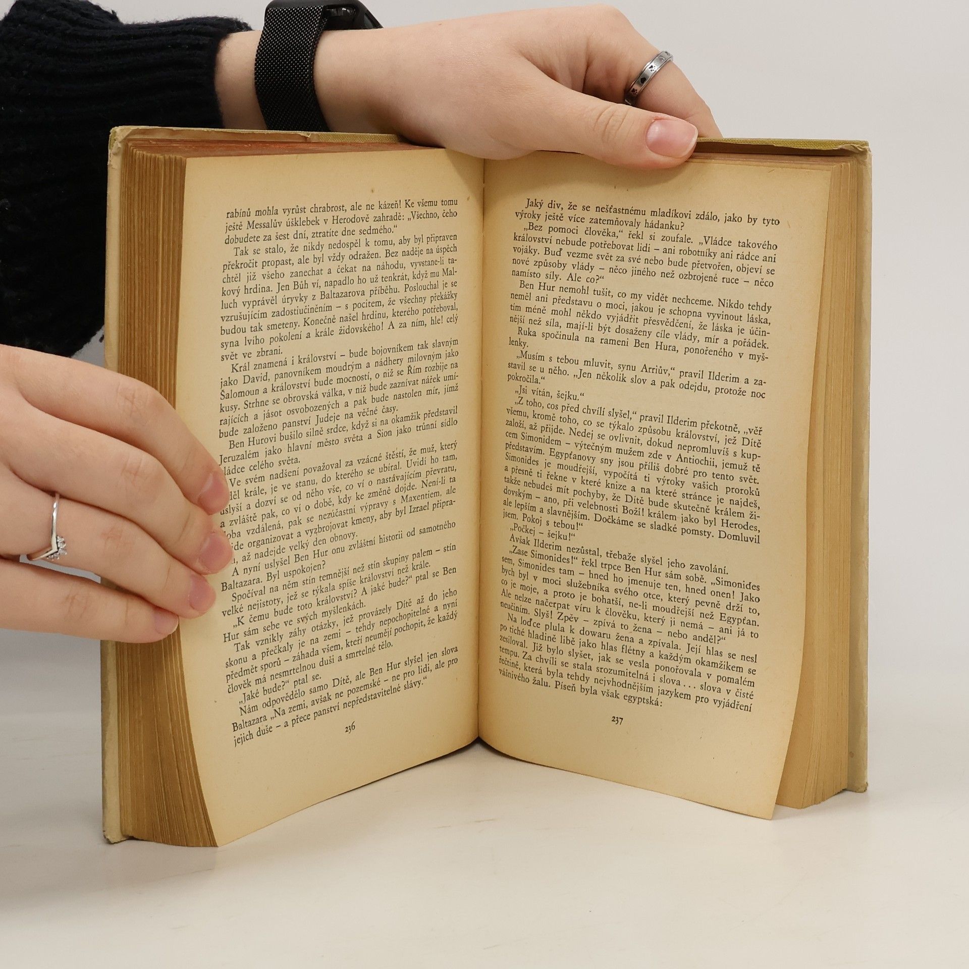 Rozsáhle koncipovaný slavný historický román z Palestiny doby Kristovy zavádí v dramatickém příběhu čtenáře do Jeruzaléma podrobeného Římany. Do bouřlivé doby vzniku křesťanství je zasazen příběh člena jedné z předních jeruzalémských knížecích rodin, který byl za domnělý útok na představitele římské moci doživotně odsouzen na galeje a jeho matka a sestra zaživa pohřbeny v žalářní kobce. Při jedné výpravě zachránil hrdina život římskému vojevůdci a tak získal svobodu. Po letech se vrátil do Jeruzaléma, aby pátral po matce a pomstil se nepřátelům. Získal zpět majetek, nalezl šťastně své drahé a nepříteli se pomstil, ale nejvíce toužil osvobodit svou zemi. Věřil, že Mesiáš mu bude vůdcem a byl zklamaný Kristovou smrtí, záhy však přestoupil ke křesťanství a stal se štědrým mecenášem svých spolubratří.
