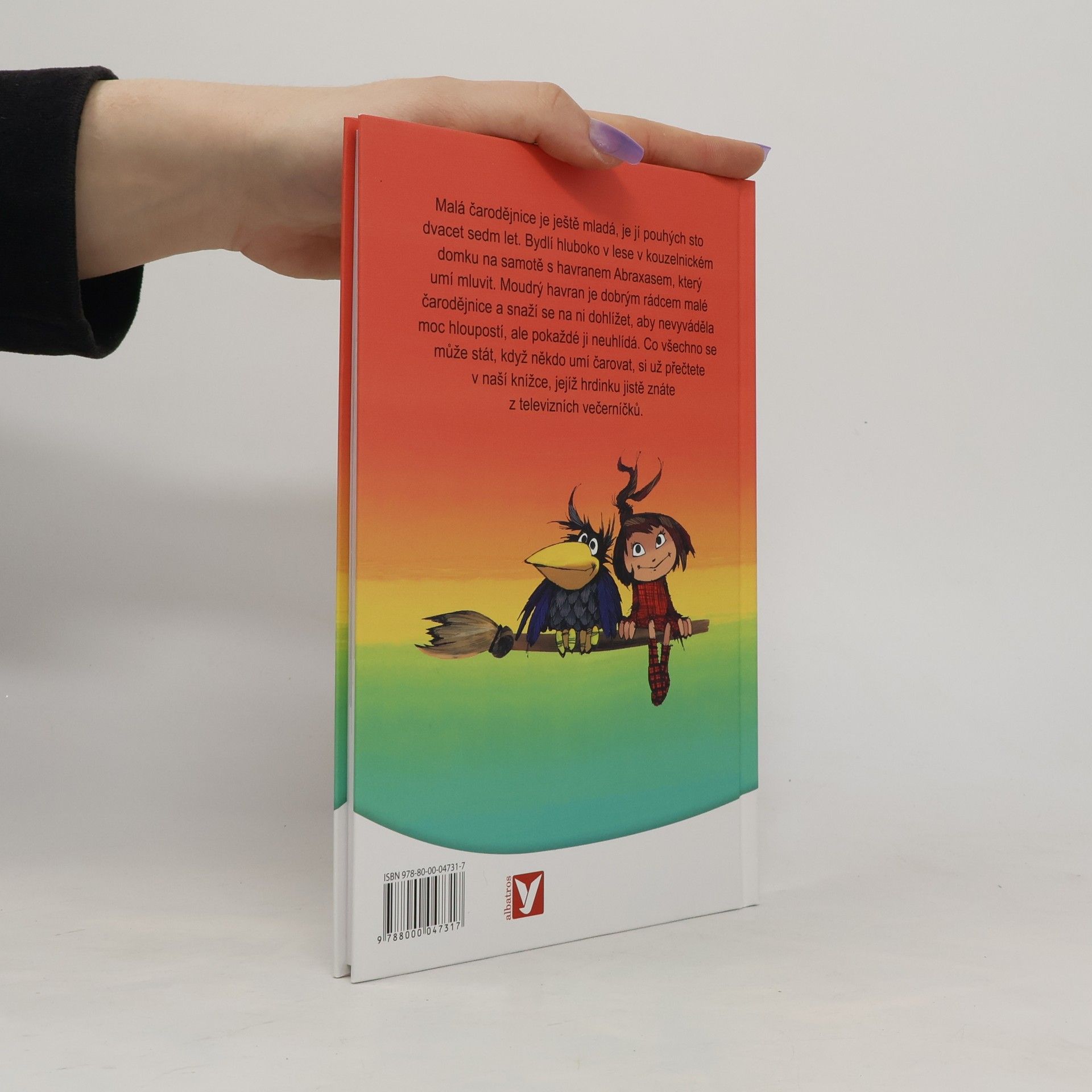 Malá čarodějnice je ještě mladá, je jí pouhých sto dvacet sedm let. Bydlí hluboko v lese na samotě s havranem Abraxasem, který umí mluvit. Moudrý havran je dobrým rádcem malé čarodějnice a snaží se na ni dohlížet, aby nevyváděla moc hloupostí, ale pokaždé ji neuhlídá. Co všechno se může stát, když někdo umí čarovat, si už přečtete v naší knížce, jejíž hrdinku jistě znáte z televizních večerníčků.
