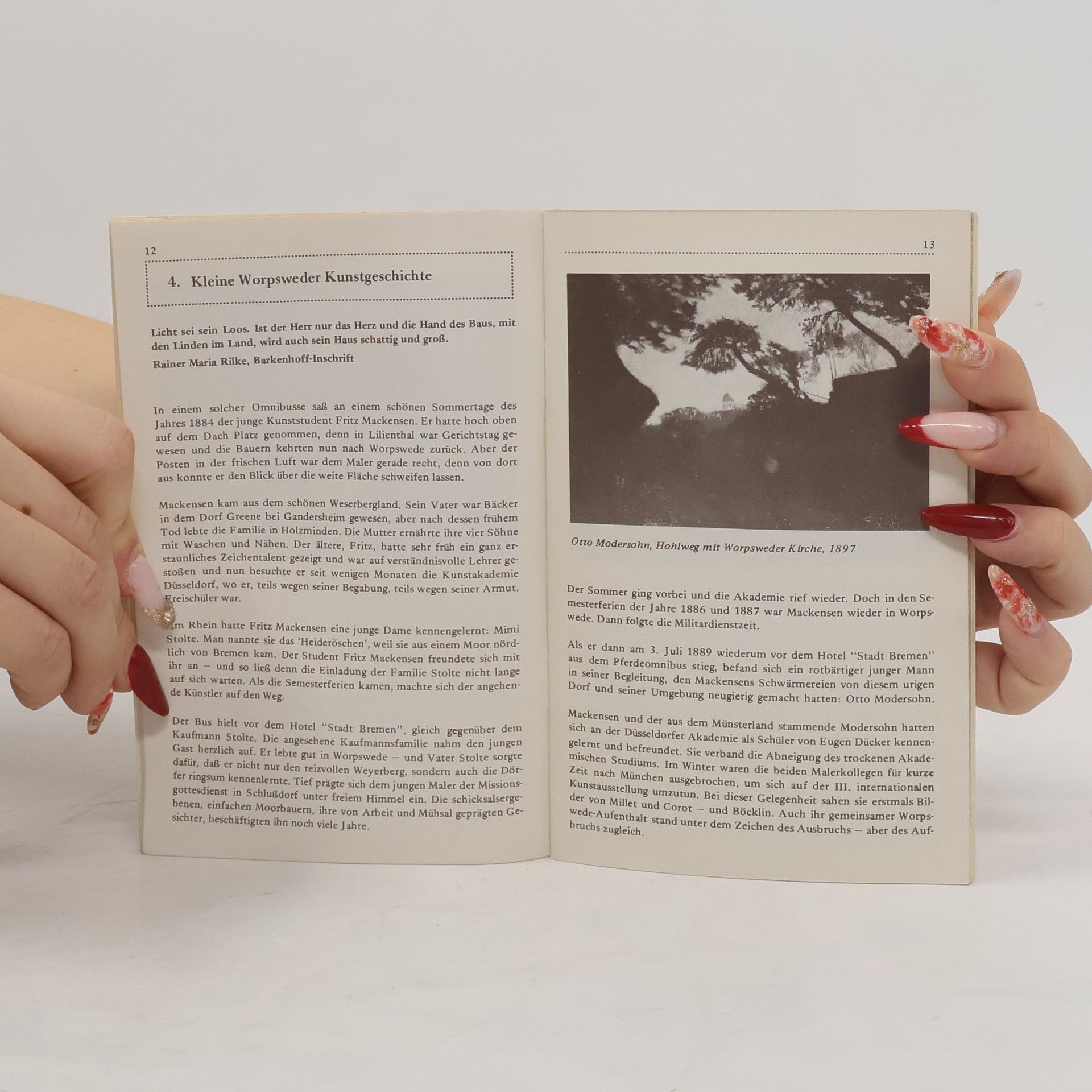 Dieser kleine Band, der bequem in jede Handtasche passt, fasst zusammen, was das Künstlerdorf Worpswede ausmacht: Die Landschaft, die Geschichten und natürlich die Kunst – von den „alten Worpswedern“ Otto Modersohn, Fritz Mackensen und Fritz Overbeck über Heinrich Vogeler und Paula Modersohn-Becker bis hin zu den Malern von heute.