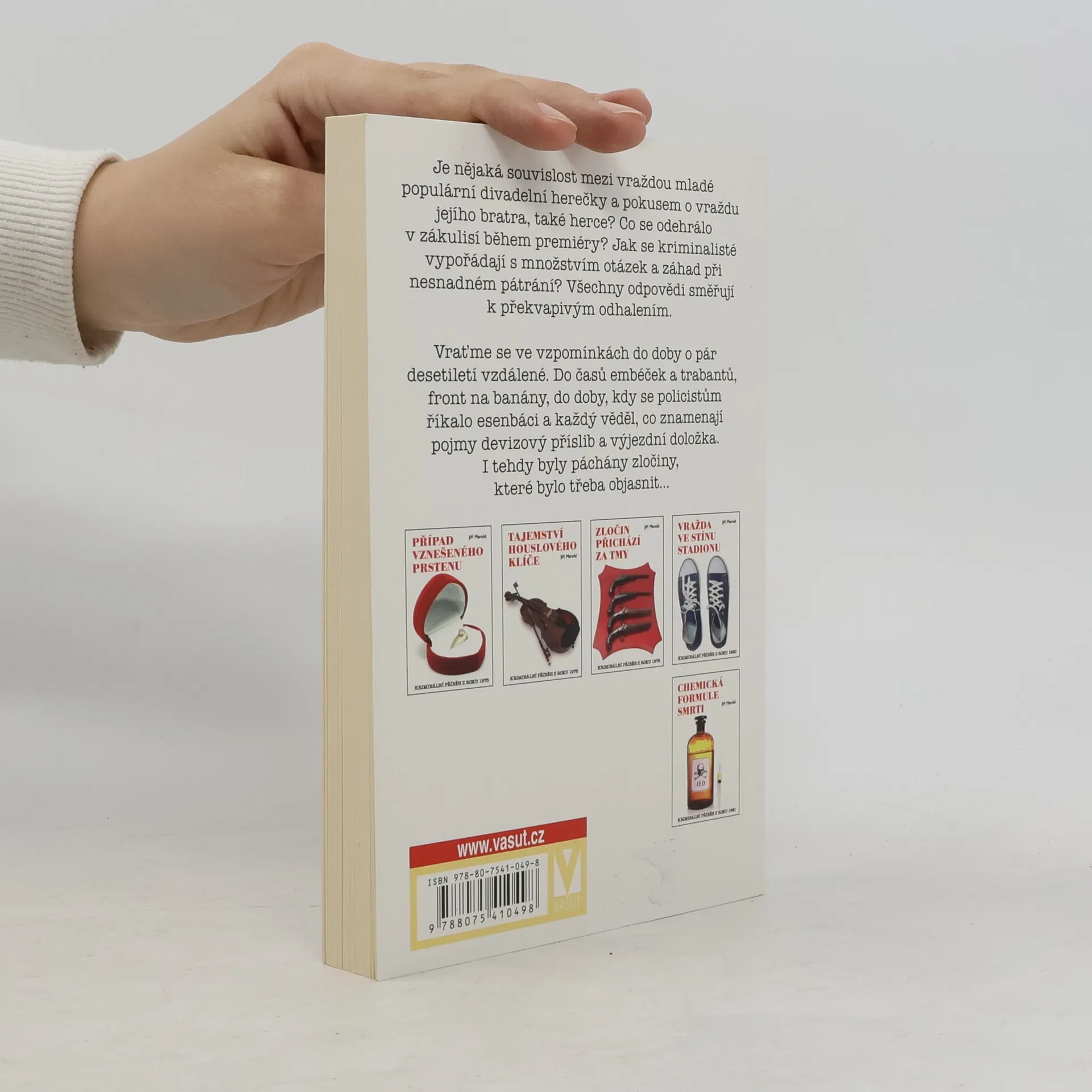 Je nějaká souvislost mezi vraždou mladé populární divadelní herečky a pokusem o vraždu jejího bratra, také herce? Co se odehrálo v zákulisí během premiéry? Jak se kriminalisté vypořádají s množstvím otázek a záhad při nesnadném pátrání? Všechny odpovědi směřují k překvapivým odhalením. Vraťme se ve vzpomínkách do doby o pár desetiletí vzdálené. Do časů embéček a trabantů, front na banány, do doby, kdy se policistům říkalo esenbáci a každý věděl, co znamenají pojmy devizový příslib a výjezdní doložka. I tehdy byly páchány zločiny, které bylo třeba objasnit…