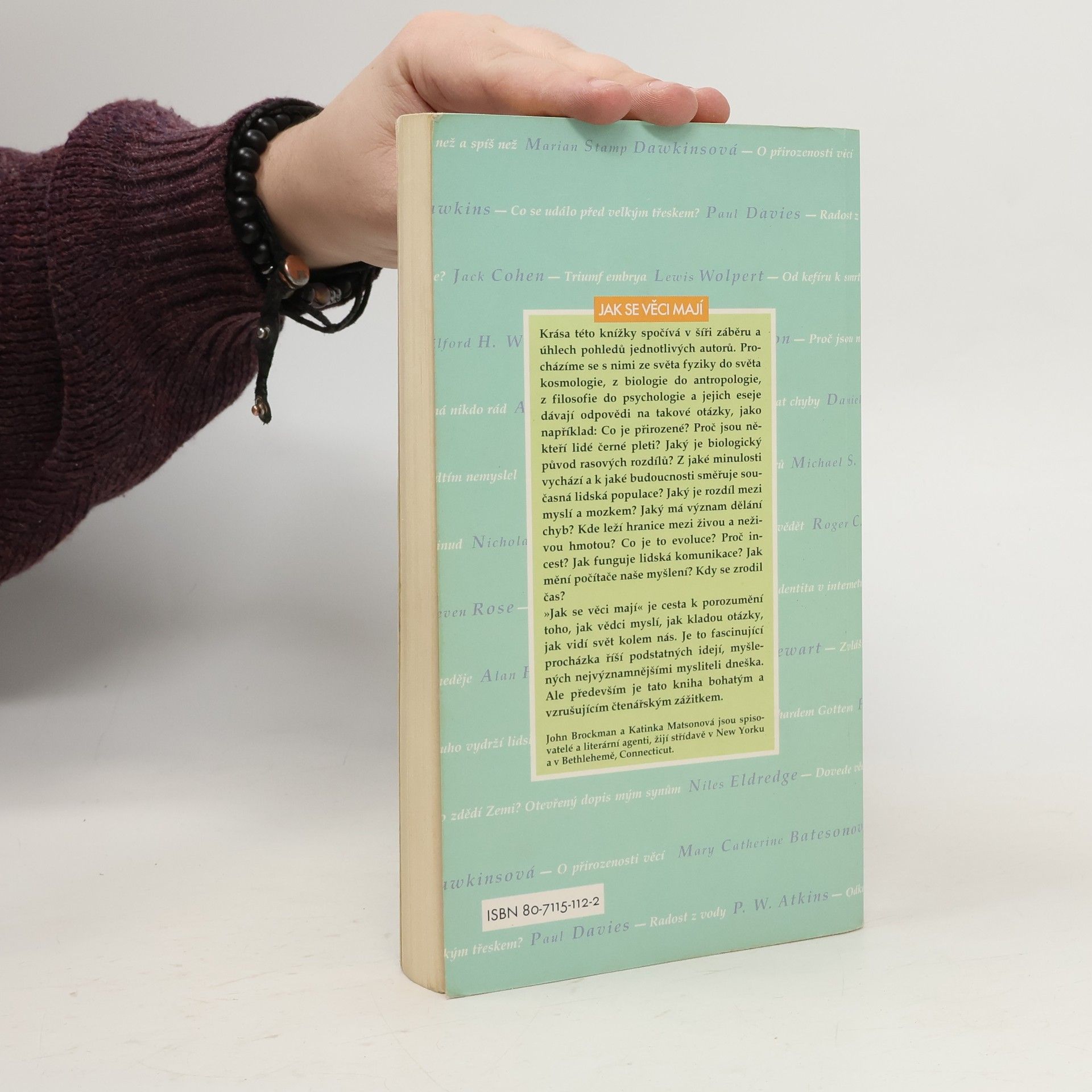 Každý z autorů napsal původní esej - základní myšlenku, koncept a návod k myšlení - z oblasti, kterou se právě zabývá. Kouzlo esejů spočívá v jejich zaměření a stručnosti: jedno téma, překvapivý úhel pohledu, závěr, proč je daná teorie přijatelná a proč ne. Jména autorů patří k těm zvučnějším v odborném světě - namátkou jmenujme paleontologa Stephena J. Goulda, embryologa L. Wolperta, D. C. Denetta, biologa R. Dawkinse, fyzika Freemana Dysona a astronoma Martina Reese. Knížka esejů je dost dlouhá na to, aby inteligentnímu čtenáři předestřela problematiku a metody světa vědců, a dost krátká na to, aby se vešla do kapsy tomu, kdo cestuje vlakem, letadlem, metrem, tramvají nebo autobusem.