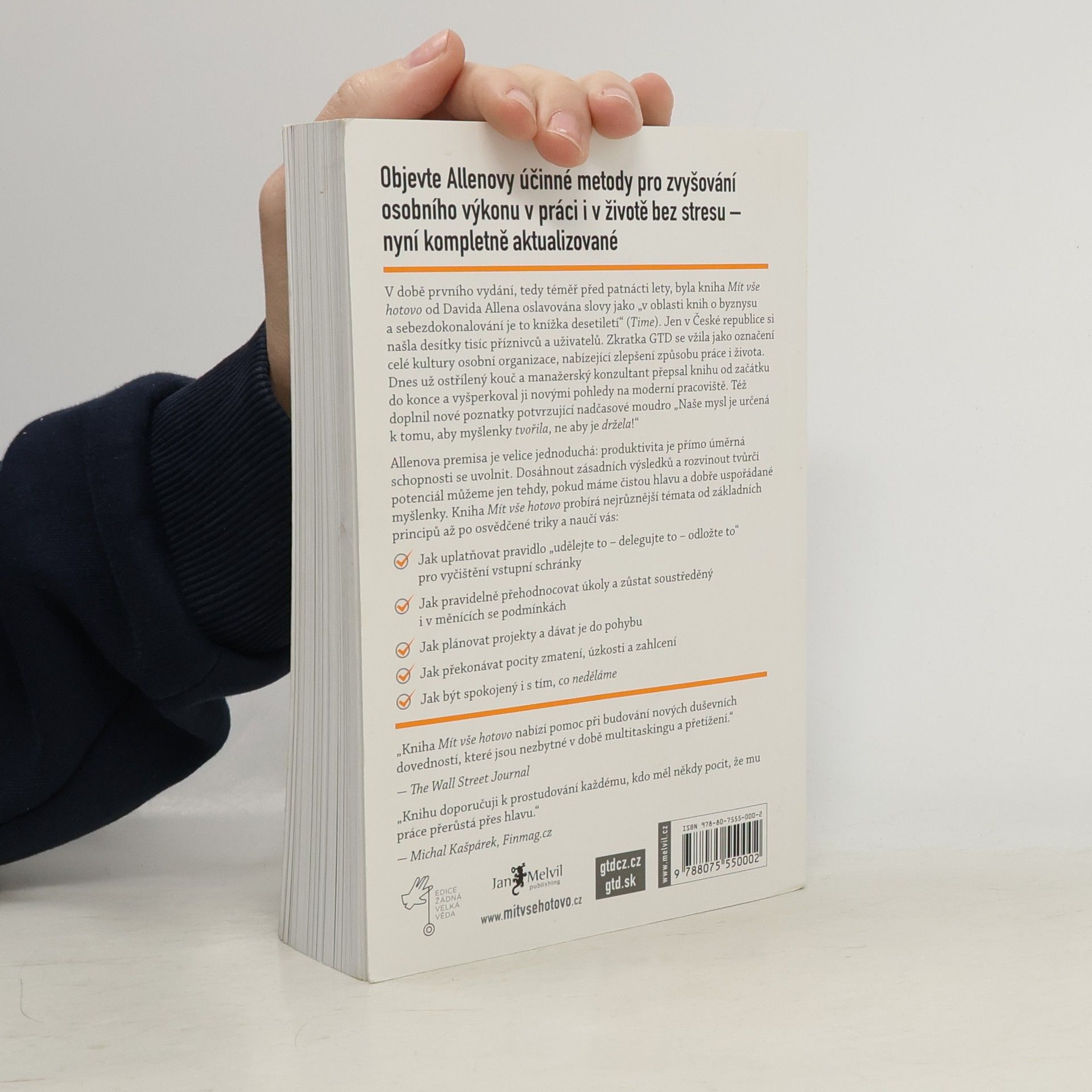 David Allen vás nenaučí organizovat pracovní úkoly, abyste pracovali více, ale naopak! Zavedením metodologie GTD do vašeho pracovního života zefektivníte práci, získáte volný čas, zbavíte se stresu a zklidníte mysl. Vedlejším účinkem je i zlepšení kvality spánku a vnitřní spokojenosti. Tato kniha se odlišuje od ostatních publikací o produktivitě. Poprvé vyšla před patnácti lety a od té doby se stala fenoménem s třemi miliony prodaných výtisků ve více než 30 jazycích. Statisíce lidí díky metodě GTD plánují svůj čas a věnují se práci, rodině i koníčkům. Účastníci kurzů a workshopů prohloubili znalosti natolik, že je mohli zavést do firem, což vedlo k lepší organizaci a spokojenosti zaměstnanců. Podle časopisu TIME je tato kniha nejlepší knihou desetiletí v oblasti osobního rozvoje. David Allen přepsal původní rukopis, zrevidoval obsah a jazyk, přičemž zachoval základní principy a techniky. Považován za jednoho z nejvlivnějších myslitelů v osobní produktivitě, Allen pracuje pro významné organizace a vede workshopy po celém světě. S více než pětatřicetiletou praxí manažerského konzultanta a kouče je jeho práce často zmiňována v prestižních periodikách. Allen žije v Amsterdamu.