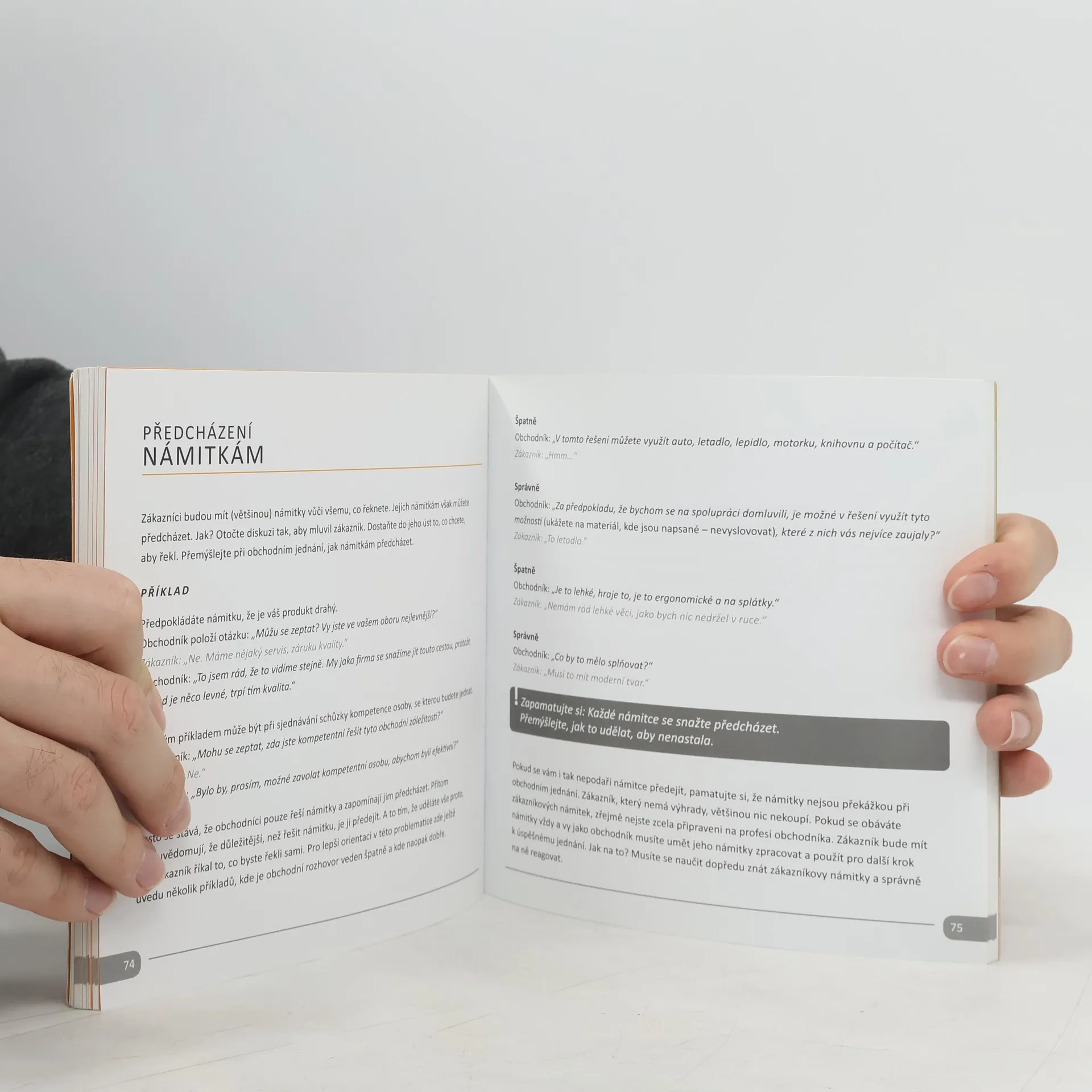 Příručka se snaží zdůraznit rozdíl mezi prodejcem a obchodníkem. Obsahuje přehled hlavních zásad úspěšného obchodování a dva základní druhy obchodníků. Nechybějí ani rady zaměřené na překonání vlastního strachu, navázání vztahů se zákazníky, vedení obchodního jednání, průběh prodeje, vyvrácení pochybností zákazníka nebo překonání strachu z telefonování. Pro větší srozumitelnost najdeme v textu velké množství nejrůznějších příkladů jednání se zákazníkem.