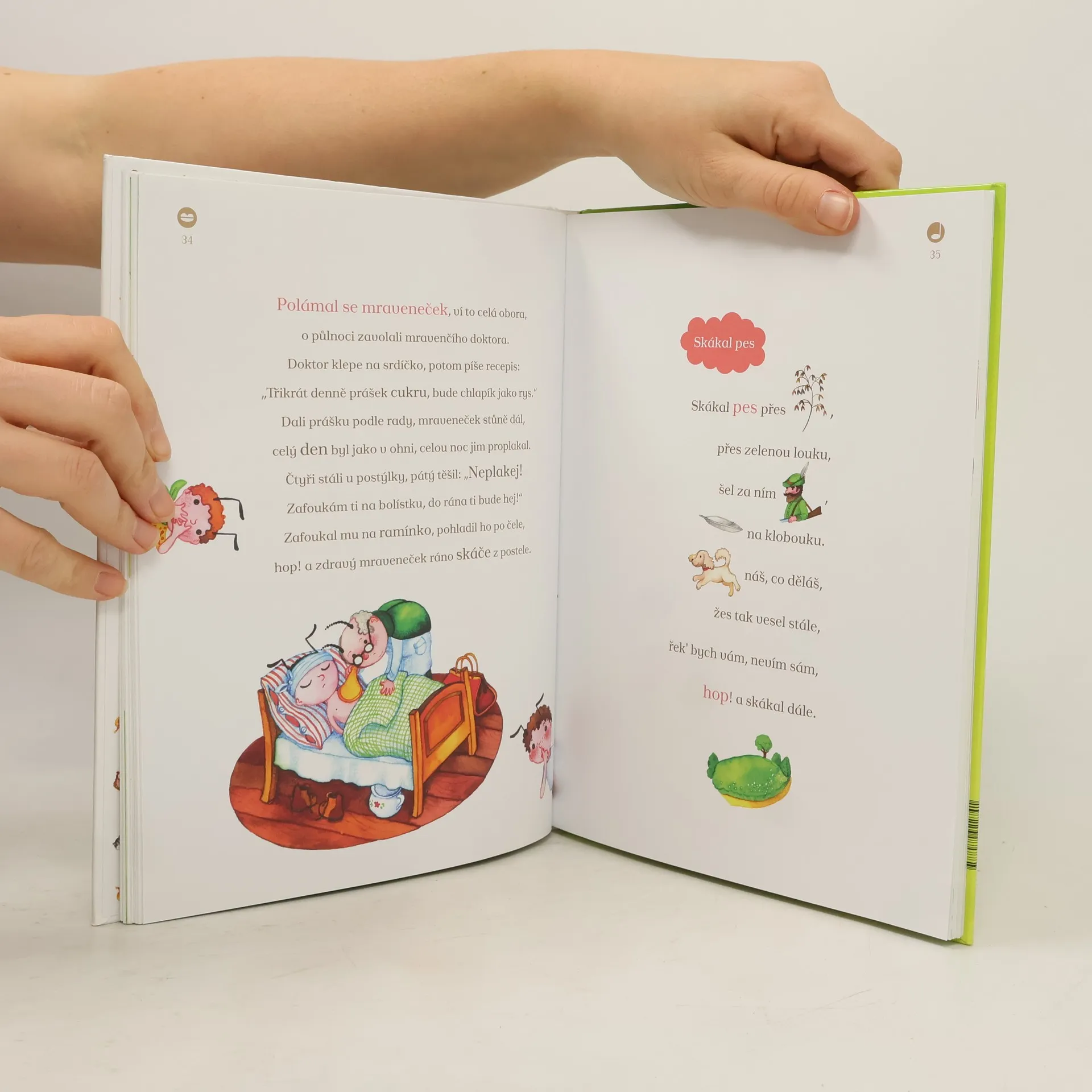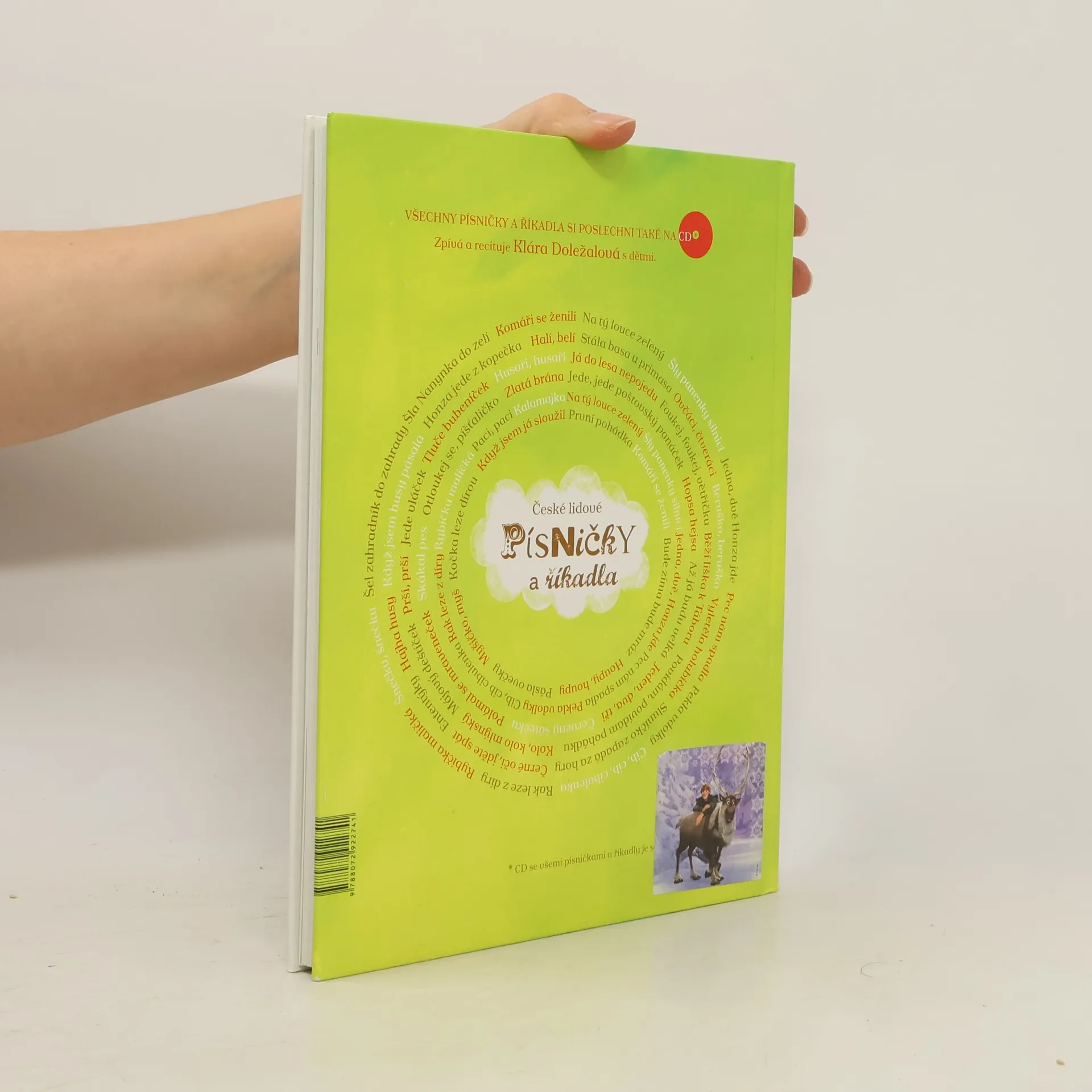 Celobarevná publikace, ve které se děti naučí slova ke známým českým lidovým písničkám a říkadlům za pomoci malovaného čtení a zároveň si je budou moci poslechnout na přibaleném CD, na kterém je s dětmi nazpívala Klára Doležalová.