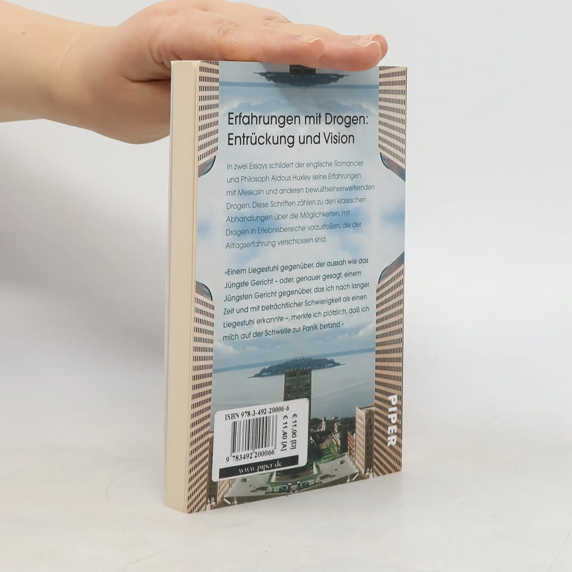 Die beiden epochemachenden Essays Aldous Huxleys berichten von Entdeckugsreisen zu den »Antipoden unseres Bewusstseins«, in Regionen des Seins, die nur im Zustand der Entrückung zu erreichen sind, In den »Pforten der Wahrnehmung« schildert Huxley seine Experimente mit Meskalin, die zu einer außerordentlichen visuellen Wahrnehmungsfähigkeit führten, zum Erlebins des »Wunders der reinen Existenz«. Die moralische und geistige Quintessenz dieser Erfahrung wird auch in dem Essay »Himmel und Hölle« analysiert, in dem der Autor darlegt, dass sich das Paradies der »Neuen Welt des Geistes« durch Emotionen wie Furcht und Hass in sein Gegenteil verkehren kann.