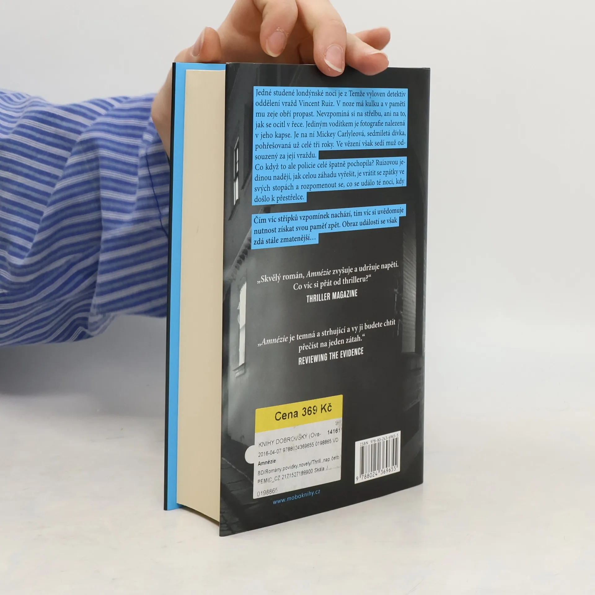 Jedné studené londýnské noci je z Temže vytažen detektiv oddělení vražd Vincent Ruiz. V noze má kulku a v paměti mu zeje obří propast. Nevzpomíná si ani na střelbu, ani na to, jak se ocitl v řece. Jediným vodítkem je fotografie nalezená v jeho kapse. Je na ní Mickey Carlyleová, sedmiletá dívka, pohřešovaná už celé tři roky… Co když to ale policie celé špatně pochopila? Ruizovou jedinou nadějí, jak celou záhadu vyřešit, je vydat se po svých vlastních stopách a rozpomenout se, co se tu noc vlastně stalo. Pomoci mu může jediný muž – psycholog Joe O’Loughlin. U románu Amnézie nestačíte otáčet stránky. A zvraty v ději jsou smrtonosné.