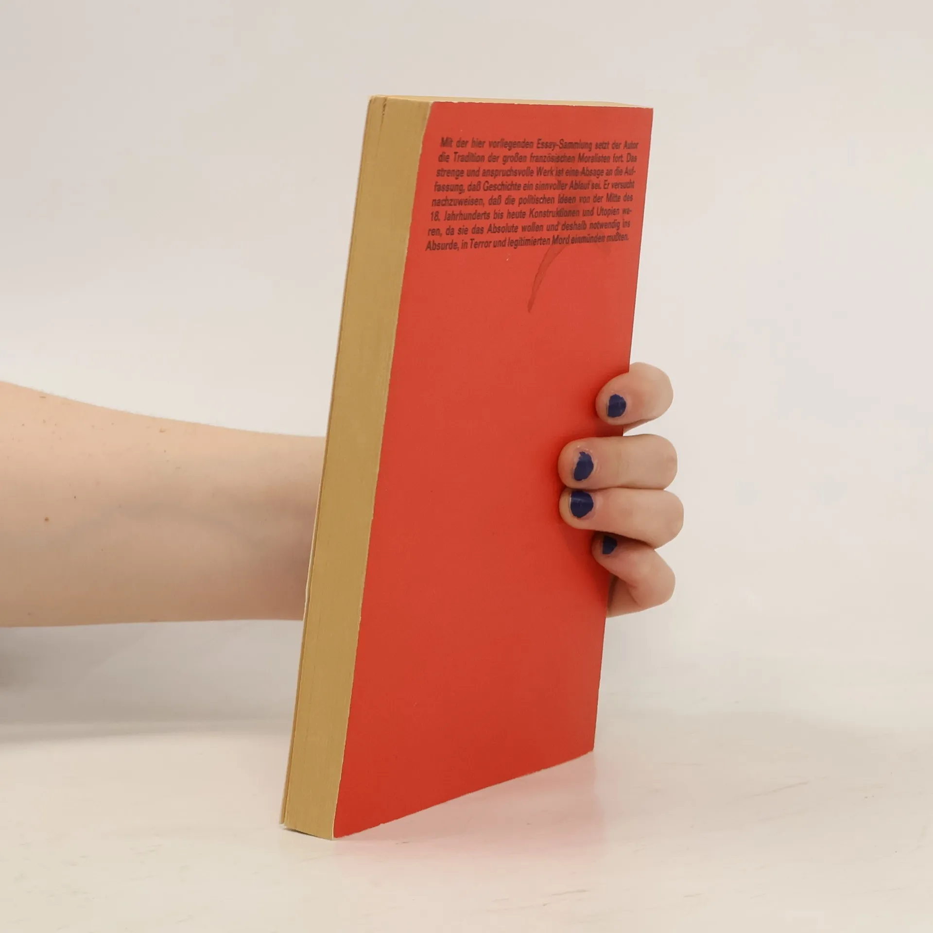 «Unsere Verbrecher sind nicht mehr jene entwaffneten Kinder, die zur Entschuldigung die Liebe anriefen. Sie sind im Gegenteil erwachsen und haben ein unwiderlegbares Alibi, die Philosophie nämlich, die zu allem dienen kann, sogar dazu, die Mörder in Richter zu verwandeln.» Mit der hier vorliegenden Essaysammlung setzt Albert Camus die Tradition der französischen Moralisten fort. Das strenge und anspruchsvolle Werk ist eine Absage an die Auffassung, dass Geschichte ein sinnvoller Ablauf sei. Er versucht nachzuweisen, dass die politischen Ideen von der Mitte des 18. Jahrhunderts bis heute Konstruktionen und Utopien waren, da sie das Absolute wollen, und deshalb notwendig ins Absurde, in Terror und legitimierten Mord einmünden mussten.