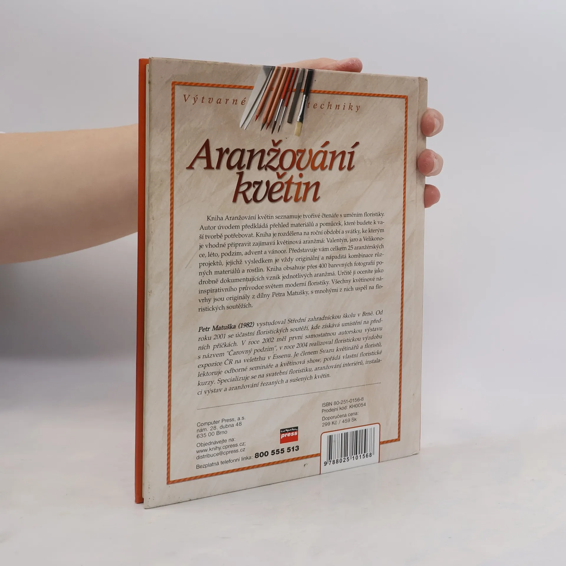 Kniha Aranžování květin seznamuje tvořivé čtenáře s uměním floristiky. Autor úvodem předkládá přehled materiálů a pomůcek, které budete k vaší tvorbě potřebovat. Kniha je rozdělena na roční období a svátky, ke kterým je vhodné připravit zajímavá květinová aranžmá: Valentýn, jaro a Velikonoce, léto, podzim, advent a vánoce. Představuje vám celkem 25 aranžérských projektů, jejichž výsledkem je vždy originální a nápaditá kombinace různých materiálů a rostlin. Kniha obsahuje přes 400 barevných fotografií podrobně dokumentujících vznik jednotlivých aranžmá. Určitě ji oceníte jako inspirativního průvodce světem moderní floristiky. Všechny květinové návrhy jsou originály z dílny Petra Matušky, s mnohými z nich uspěl na floristických soutěžích.