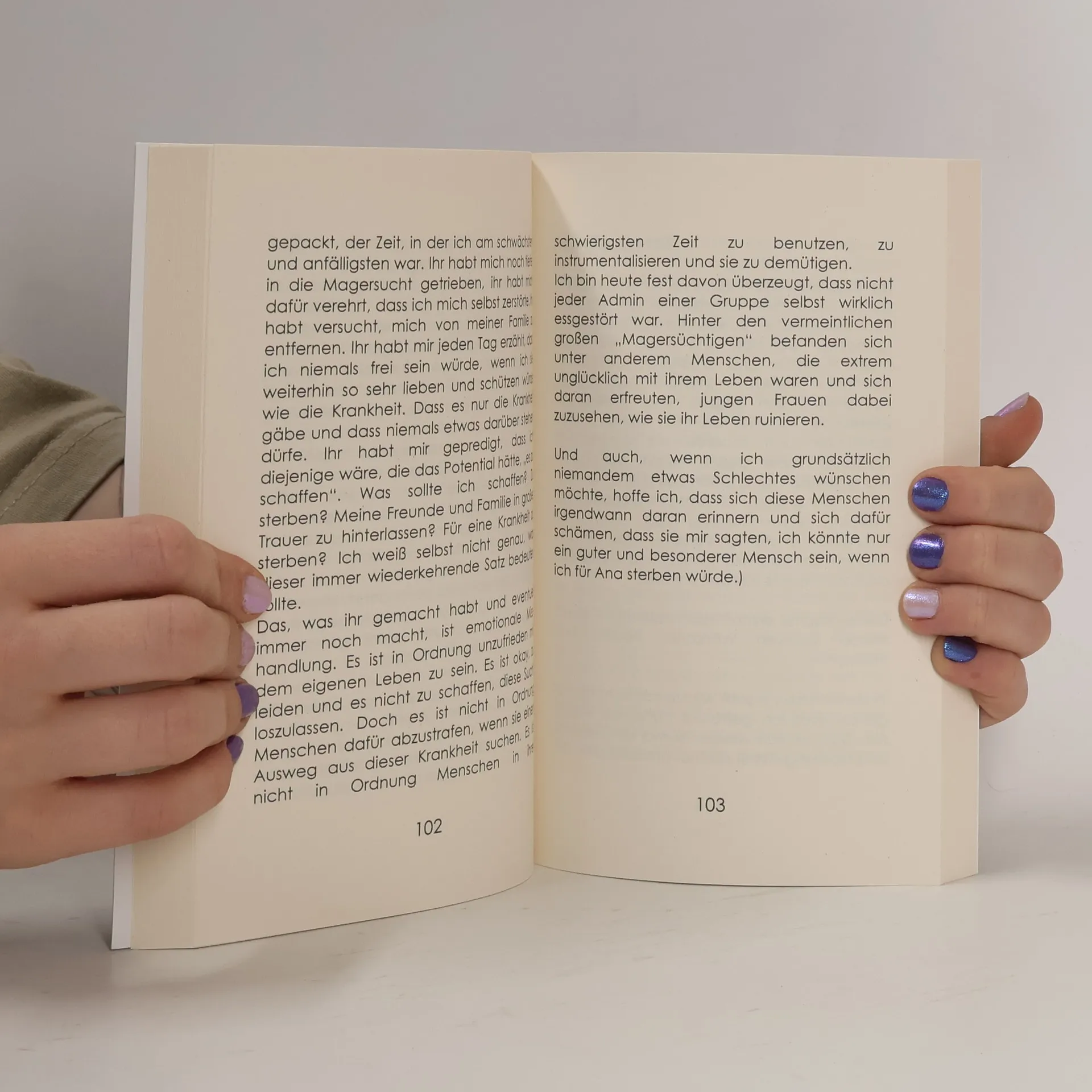 Hanna Kopke teilt in ihrem Buch ihre Erfahrungen mit Magersucht, von den Anfängen bis zur extremen Ausprägung der Krankheit, die sie vollständig kontrollierte. Sie gewährt einen tiefen Einblick in ihre düstersten Gedanken und die Realität während ihrer Erkrankung. Ihre Offenheit und Ehrlichkeit ermöglichen es, die Herausforderungen und den emotionalen Kampf nachzuvollziehen, während sie gleichzeitig ihren Weg zur Heilung beschreibt. Mit beeindruckender Reflexion blickt sie auf ihre Geschichte zurück und verleiht ihr Bedeutung und Sinn. Anorexia nervosa ist eine ernsthafte Erkrankung, die viele junge Menschen betrifft und oft fatale Folgen hat. In der akuten Phase sind Betroffene häufig nicht für Hilfe zugänglich, was Angehörige und Fachleute in ihrer Ohnmacht zurücklässt. Kopke erklärt eindringlich, wie sie letztlich den Ausweg aus der Magersucht fand und ein erfülltes Leben zurückgewinnen konnte. Ihr Buch bietet ein vertieftes Verständnis für die inneren Kämpfe der Erkrankten und zeigt, was hilfreich sein kann. Es ermutigt sowohl Betroffene als auch deren Angehörige und Freunde, den Weg zurück ins Leben zu finden. Es regt zum Nachdenken an und fördert das Verständnis für diese komplexe Erkrankung.