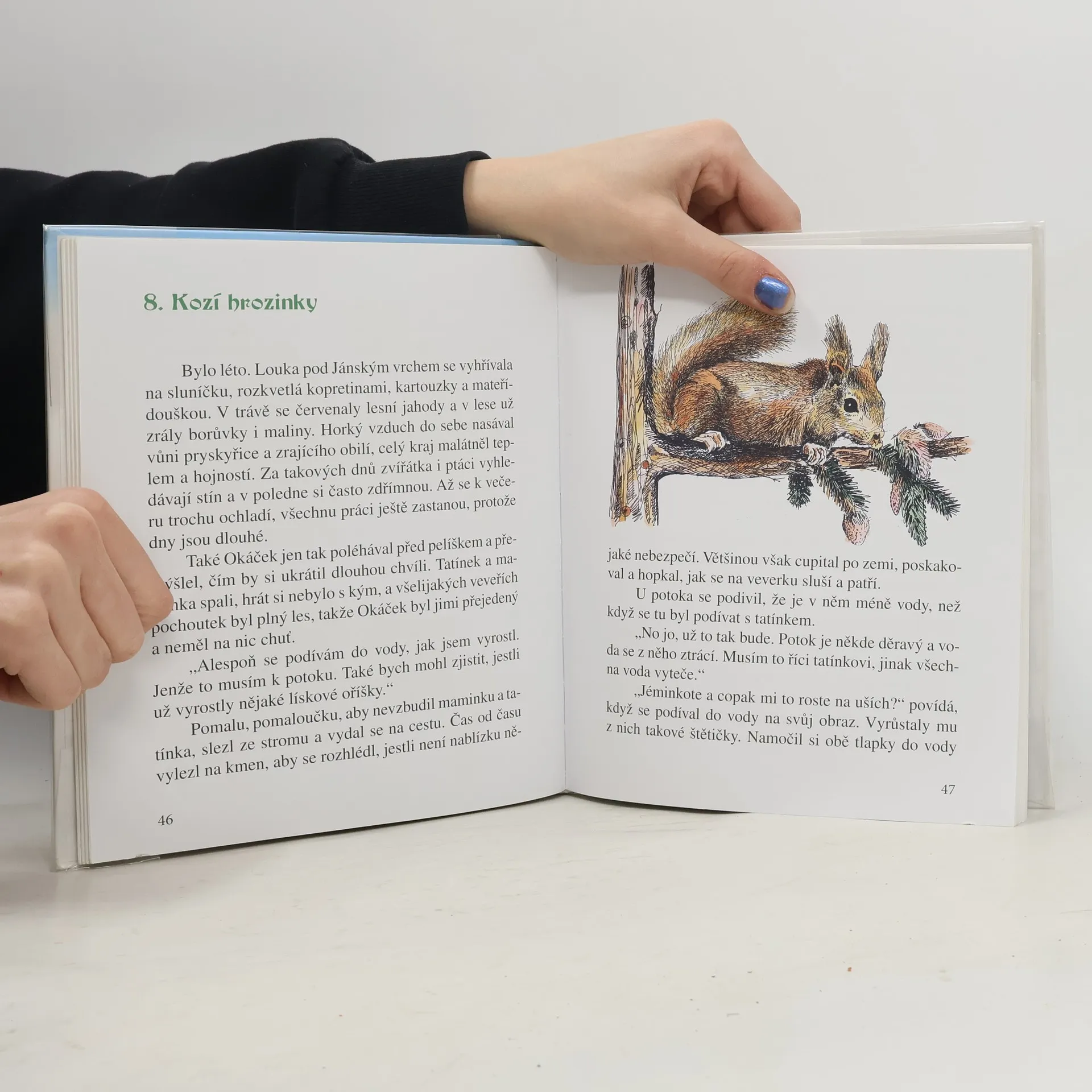 Uprostřed Jánského vrchu v jednom starém mohutném dubu žije rodinka veverek. Když se jim narodí synáček, dají mu podle jeho velkých černých oček jméno Okáček. V lese se stále něco děje a Okáček se vůbec nenudí. Poznává přírodu a zvířátka kolem sebe. Jednou ho vyděsí bouřka, lekne se psa pana hajného, pochutná si na lesních dobrůtkách, ale také chodí do školy. Sledujeme ho až do doby, kdy sám opouští domov a hledá si nový, to už ale pro sebe a pro svou nevěstu veverku Rézinku. Kniha se snaží vést děti k potřebnému vztahu k přírodě a v doslovu vysvětluje základy myslivosti a nabízí také slovníček nejběžnějších mysliveckých výrazů Příhody veveřího kluka Okáčka s doslovem a poučením o přírodě, ročních obdobích v lese a myslivosti. Pro děti do deseti let