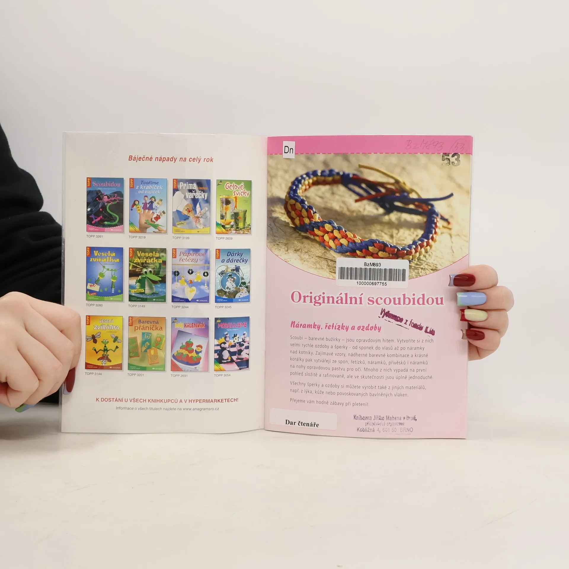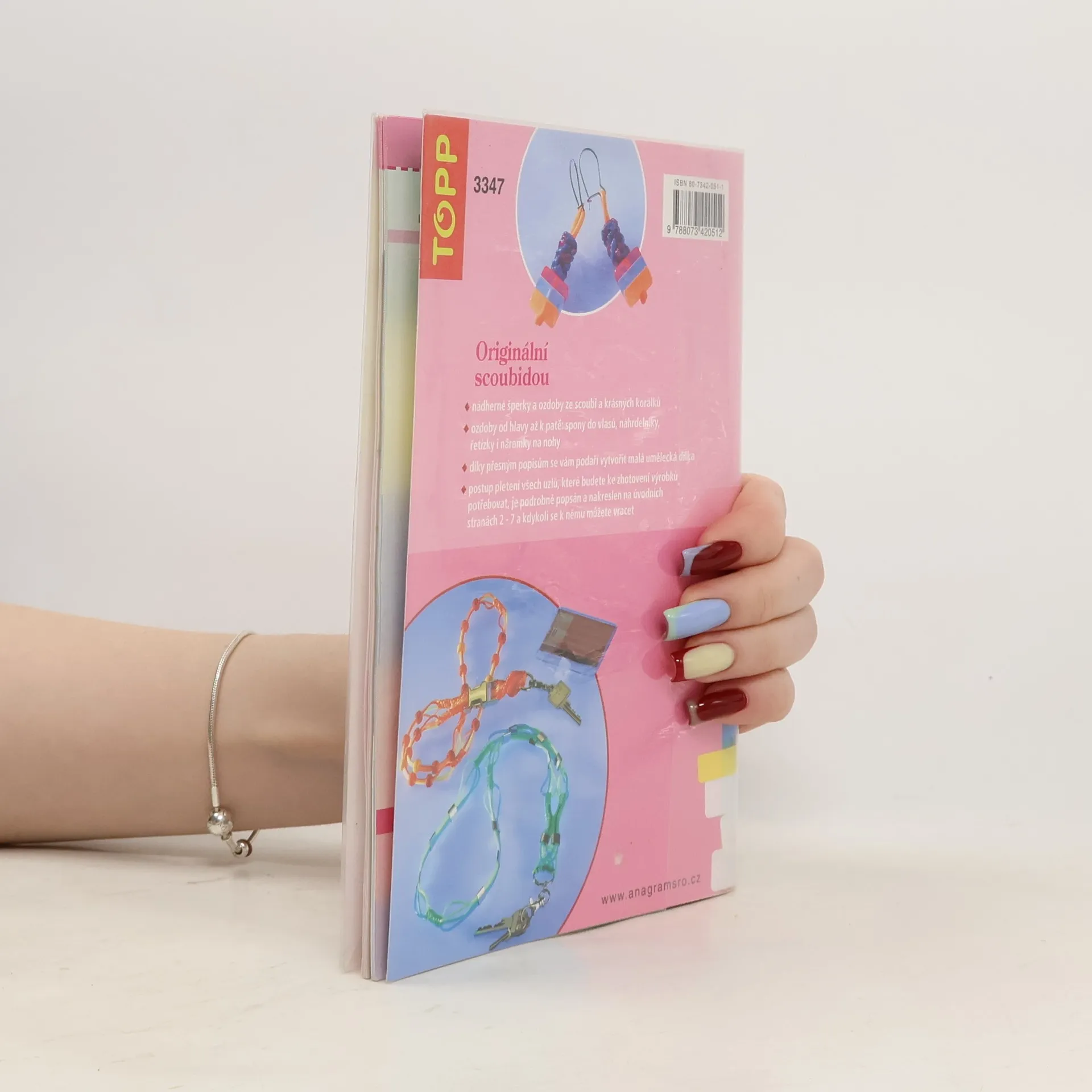 Knížka Originální scoubidou přinášející originální návody na tvorbu ze scoubi - různobarevných bužírek. Můžete si tak vytvořit šperky, ozdoby, spony do vlasů, náhrdelníky, řetízky i náramky na nohy zdobené navíc vplétanými barevnými korálky. Díky přesným popisům, barevným ilustracím a podrobně popsaným a rozkresleným postupům se vám podaří vytvořit malá umělecká dílka.