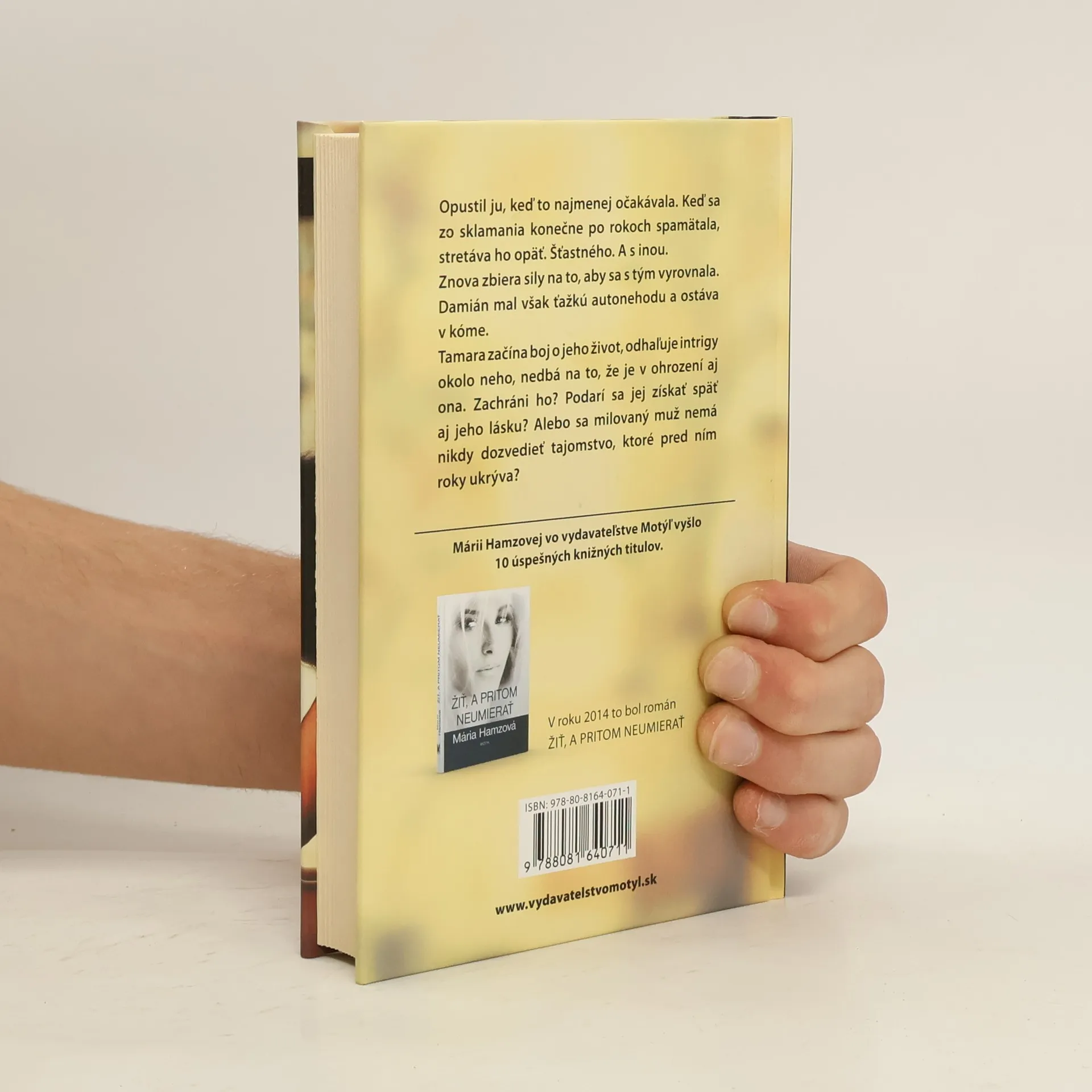 Opustil ju, keď to najmenej očakávala. Keď sa zo sklamania konečne po rokoch spamätala, stretáva ho opäť. Šťastného. A s inou. Znova zbiera sily na to, aby sa s tým vyrovnala. Damián mal však ťažkú autonehodu a ostáva v kóme. Tamara začína boj o jeho život, odhaľuje intrigy okolo neho, nedbá na to, že je v ohrození aj ona. Zachráni ho? Podarí sa jej získať späť aj jeho lásku? Alebo sa milovaný muž nemá nikdy dozvedieť tajomstvo, ktoré pred ním roky ukrýva?