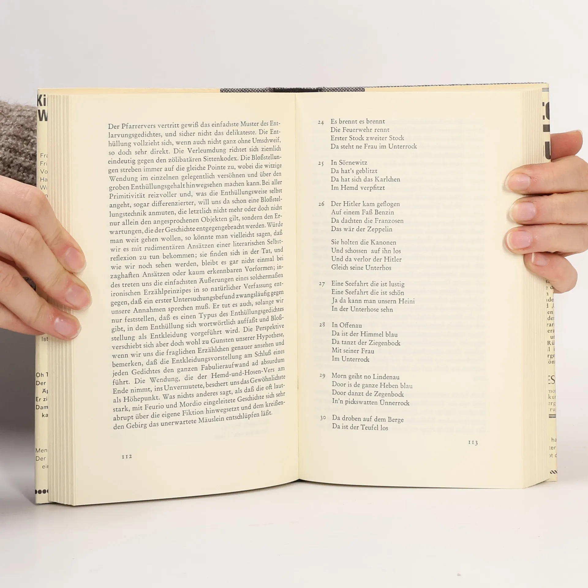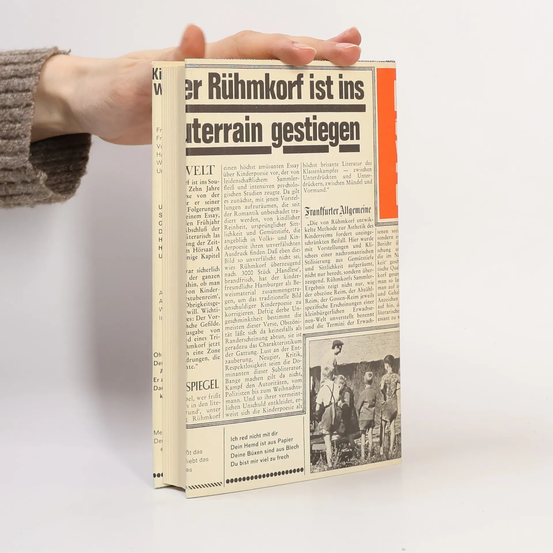 Exkurse in den literarischen Untergrund Peter Rühmkorf hat aus seiner Skepsis gegen romantisierende Aufblicke zum Mond und gegen elegische geschmäcklerische Anbetung Blauer Blumen die Konsequenz gezogen und ist den Wahrheiten des vom landläufigen Kulturbetriebes stets ignorierten poetischen Volksvermögens nachgegangen. Hier geht es drastisch zu, hier gelten keine heiligen Güter der Nation und keine approbierten Wertnotierungen der etablierten Konvention. Ungeschminkt und derbdrollig ist hier von der Menschenerzeugung die Rede, und ähnlich unverblühmt werden die landeseigenen Autoritäten besungen. Das Ergebnis seiner Arbeit ist eine umfassende Dokumentation der sonst nur von Mund zu Mund verbreiteten Volks- und Kinderpoesie - vom Abzählvers über den Schulreim bis zum Antischlager und zum subversiven Gruppengesang. Die Vielfalt der deftigen und treffenden Freimütigkeiten präsentiert das Bild einer scheinbar ungewaschenen und unansehnlichen Literaturgattung, die stets zu Majestätsbeleidigung, Denkmalsschändung, Wehrkraftzersetzung, Hosen-, Bett- und Nestbeschmutzung aufgelegt ist - ein Lügendetektor gegen die Kundmachung der Herrschenden und gegen den geübten Wohllaut ihrer Unterhaltungs- und Werbeindustrie.