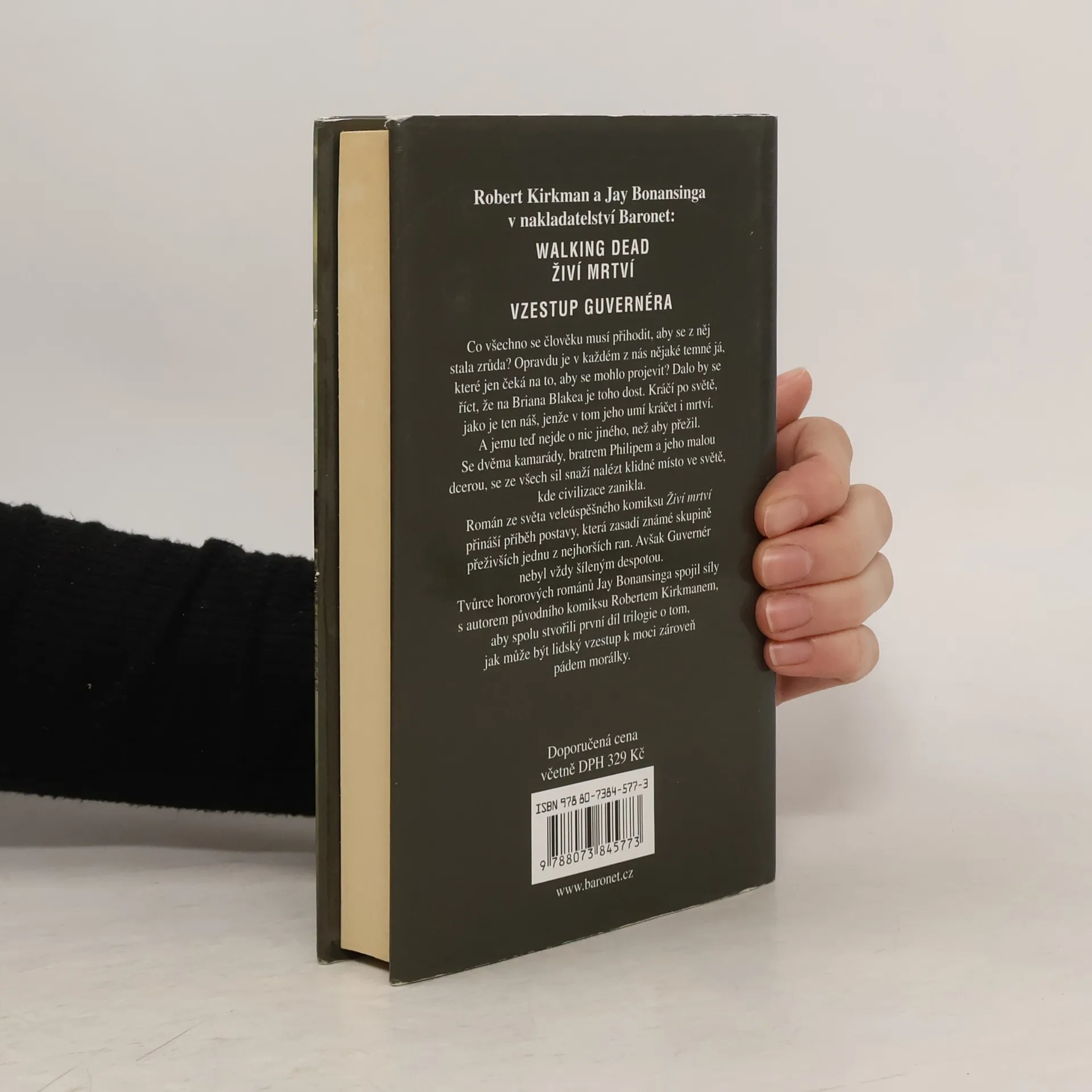 Co všechno se člověku musí přihodit, aby se z něj stala zrůda? Opravdu je v každém z nás nějaké temné já, které jen čeká na to, aby se mohlo projevit? Skoro by se dalo říct, že na Briana Blakea je toho dost. Kráčí po světě jako je ten náš, jenže v tom jeho umí kráčet i mrtví. A jemu teď nejde o nic jiného, než aby přežil. Se dvěma kamarády a bratrem Phillipem s malou dcerou se ze všech sil snaží nalézt klidné místo ve světě, kde civilizace zanikla. Román ze světa veleúspěšného komiksu Živí mrtví přináší příběh postavy, která zasadí známé skupině přeživších jednu z nejhorších ran. Avšak Guvernér nebyl vždy šíleným despotou. Tvůrce hororových románů Jay Bonansinga spojil síly s autorem původního komiksu Robertem Kirkmanem, aby spolu stvořili první díl trilogie o tom, jak může být lidský vzestup k moci zároveň pádem jeho morálky.
