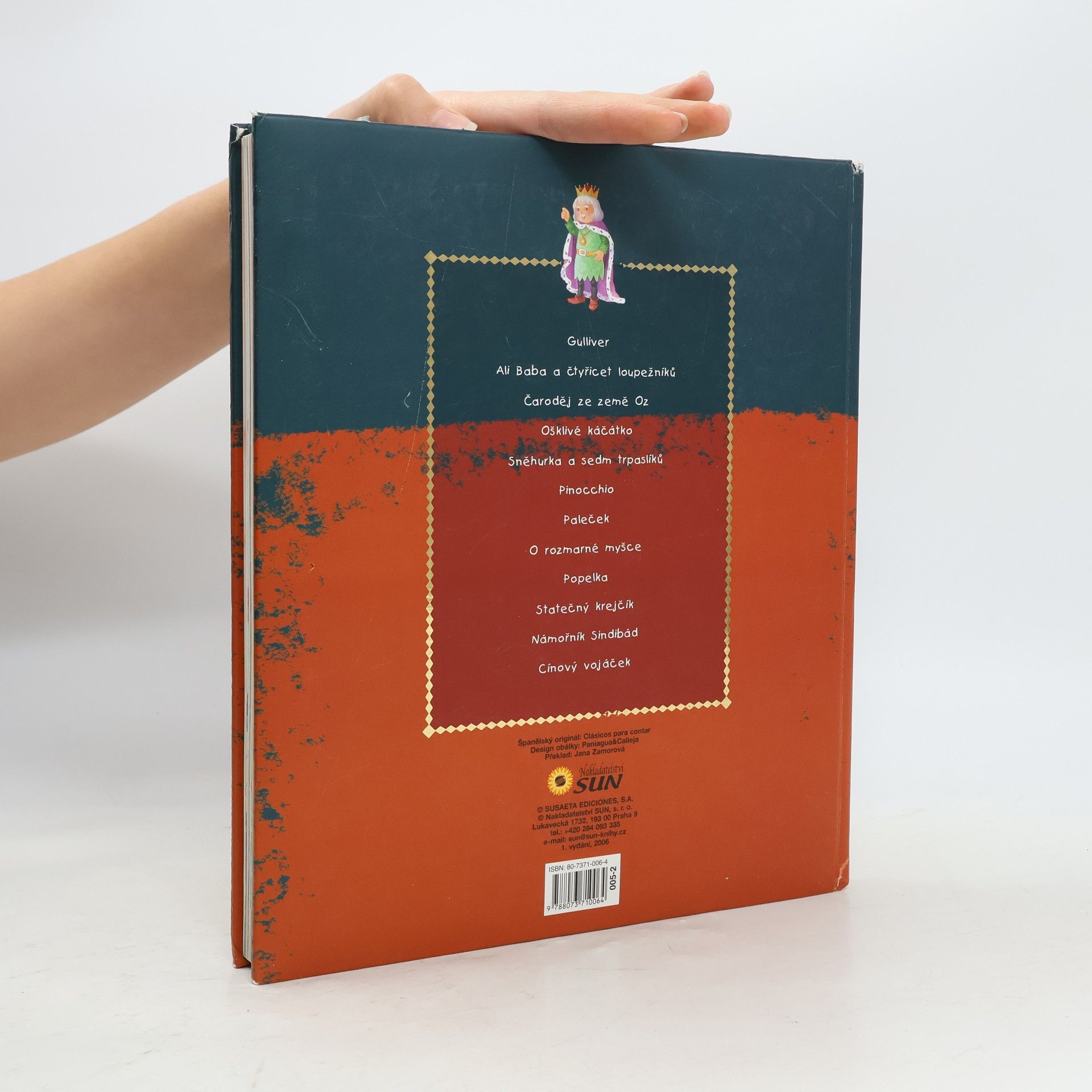 Tato kniha obsahuje ty nejznámější příběhy slavných pohádkářů, které se neomrzí žádnému dítěti: Gulliver, Ali Baba a čtyřicet loupežníků, Čaroděj ze země Oz, Ošklivé káčátko,Sněhurka a sedm trpas1íků, Pinocchio, Paleček, O rozmarné myšce, Popelka, Statečný krejčík, Námořník Sindibád, Cínový vojáček. Nádherné barevné ilustrace umocňuje luxusní obálka se zlatým písmem. Pevná polstrovaná vazba LUX. Psáno velkými tiskacími písmenky.