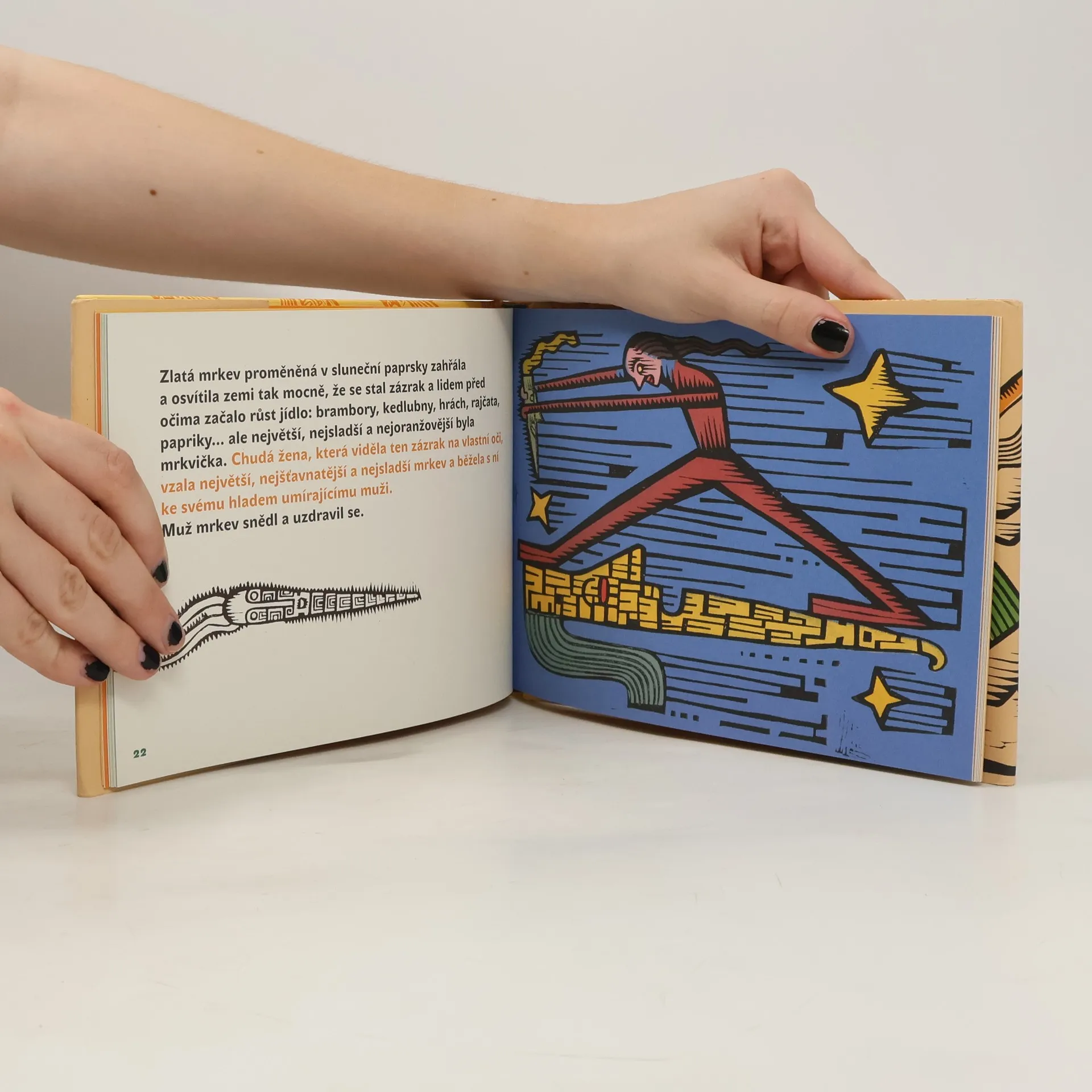 Žila, byla, narodila se jedna zlatá mrkev. Toho zlatého svátečního dne, právě když měli všichni velký hlad, ji jedna chudá žena vytáhla ze země. Zlatá mrkev, jak je krásná, podivila se. A běžela ji ukázat svým dětem a manželovi. Dvě výborně graficky zpracované pohádky pro nejmenší. O zlaté mrkvi a Jeden měl kapsu plnou, druhý prázdnou a ten třetí neměl žádnou.