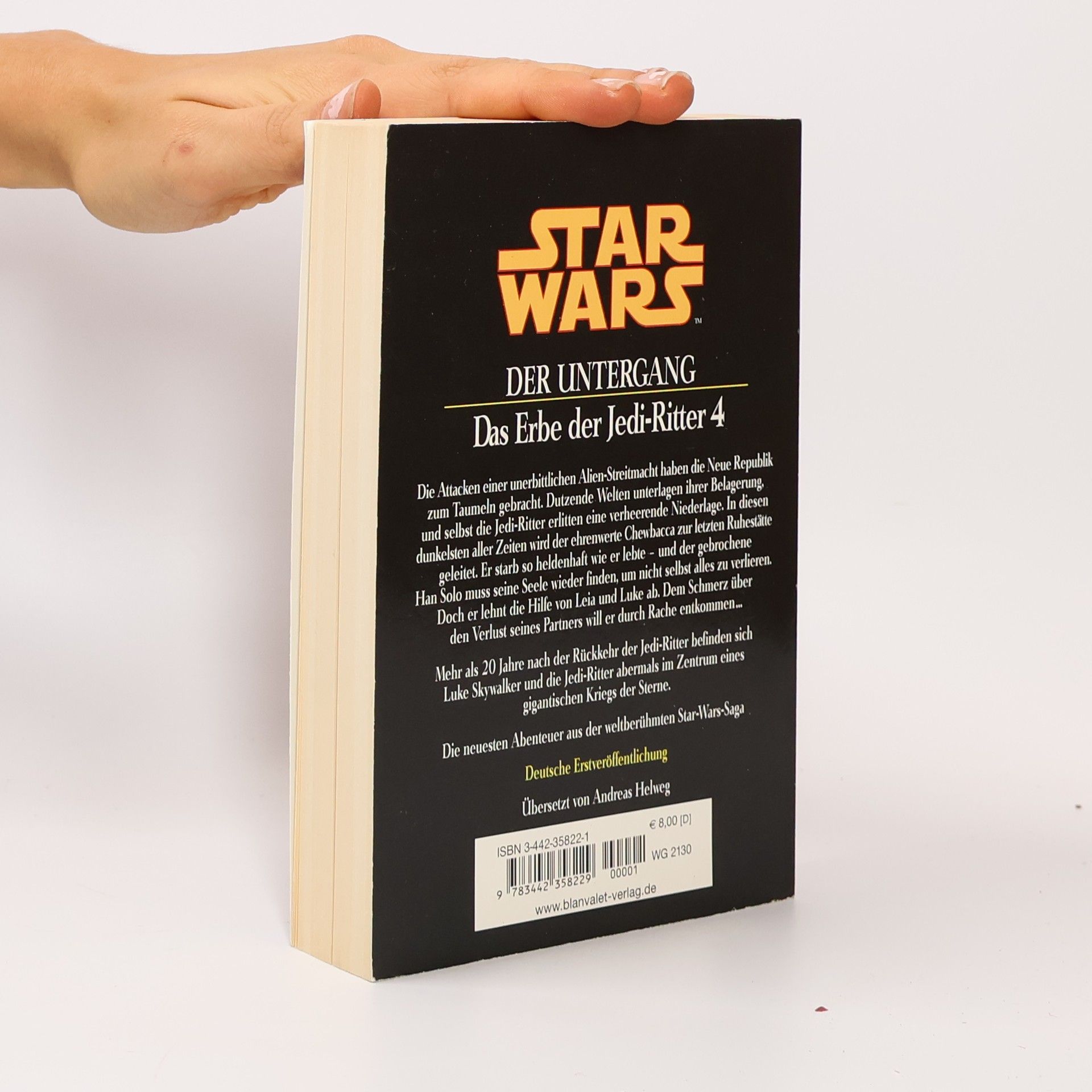 James Luceno, Star Wars: Das Erbe der Jedi-Ritter . Die letzte Chance, Werbeschwerpunkt Hochverkäufliches Lesevergnügen für alle STAR-WARS-Fans! "Die letzte Chance" stand lange an der Spitze der New-York-Times-Bestsellerliste! Hoch verkäufliches Lesefutter für alle STAR-WARS-Fans! Ein sicherer Bestseller - voller Emotionen, Abenteuer und technischer Finessen! Nach verheerenden Siegen der Alien-Macht Yuuzhan Vong sind die Moral und die Kräfte der Neuen Republik fast am Ende. Leia Organa und Han Solo haben sich auseinander gelebt. Leia überwacht nun die Evakuierung der Flüchtlinge, während Luke Skywalker versucht, die Jedi-Ritter zusammenzuhalten. Da lässt sich einer der Jedi auf eine mutige, aber äußerst leichtsinnige Undercover-Mission ein - und Han Solo stolpert mitten in eine tödliche Schlacht ...
