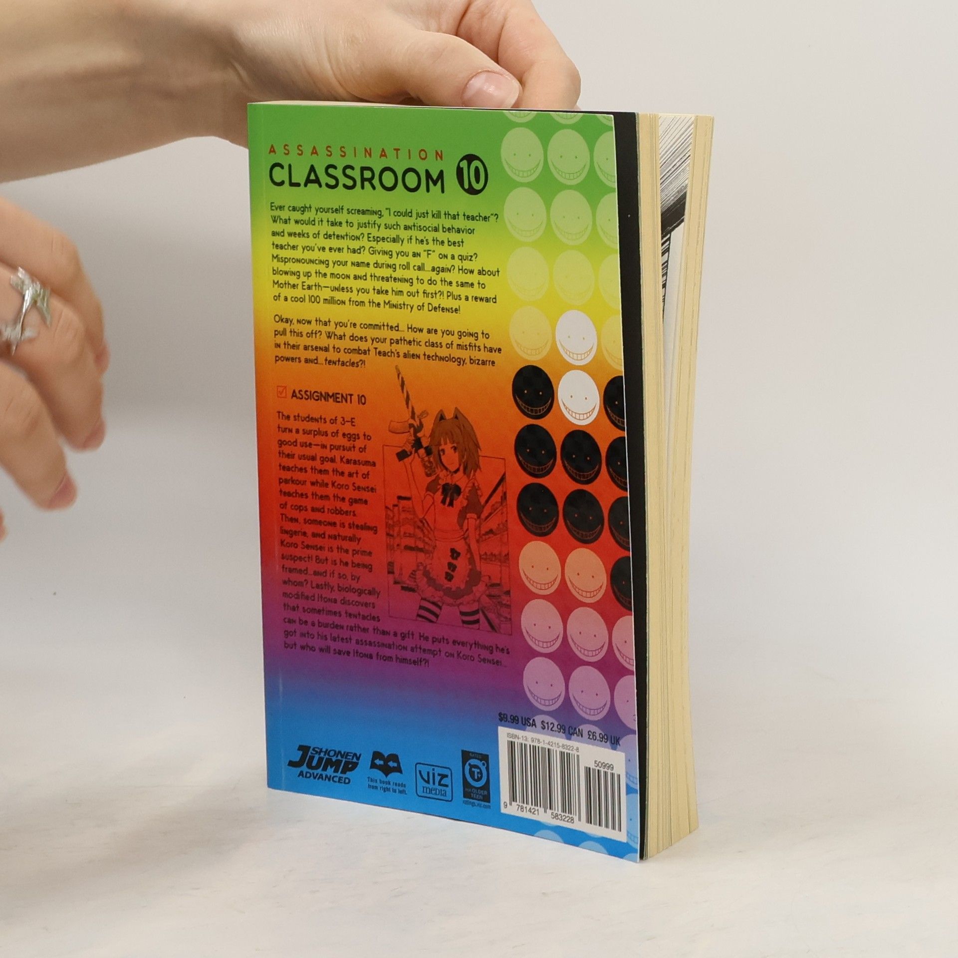 Ever caught yourself screaming, "I could just kill that teacher"? What would it take to justify such antisocial behavior and weeks of detention? Especially if he's the best teacher you've ever had? Giving you an "F" on a quiz? Mispronouncing your name during roll call...again? How about blowing up the moon and threatening to do the same to Mother Earth--unless you take him out first?! Plus a reward of a cool 100 million from the Ministry of Defense! Okay, now that you're committed... How are you going to pull this off? What does your pathetic class of misfits have in their arsenal to combat Teach's alien technology, bizarre powers and...tentacles?! The students of 3-E turn a surplus of eggs to good use--in pursuit of their usual goal. Karasuma teaches them the art of parkour while Koro Sensei teaches them the game of cops and robbers. Then, someone is stealing lingerie, and naturally Koro Sensei is the prime suspect! But is he being framed...and if so, by whom? Lastly, biologically modified Itona discovers that sometimes tentacles can be a burden rather than a gift. He puts everything he's got into his latest assassination attempt on Koro Sensei...but who will save Itona from himself?!