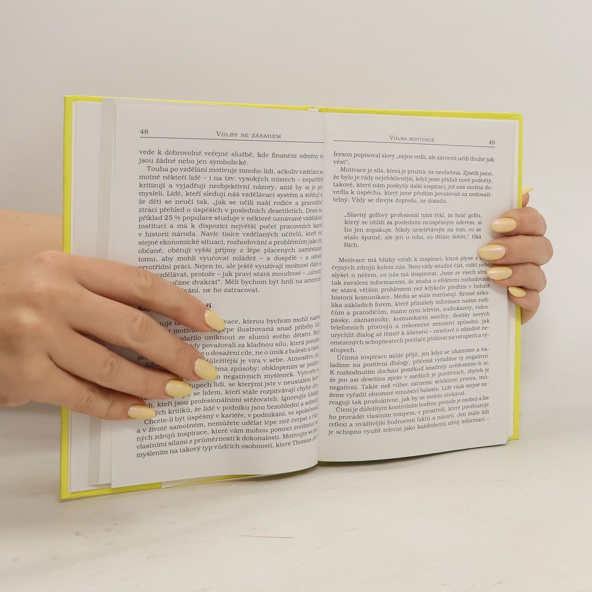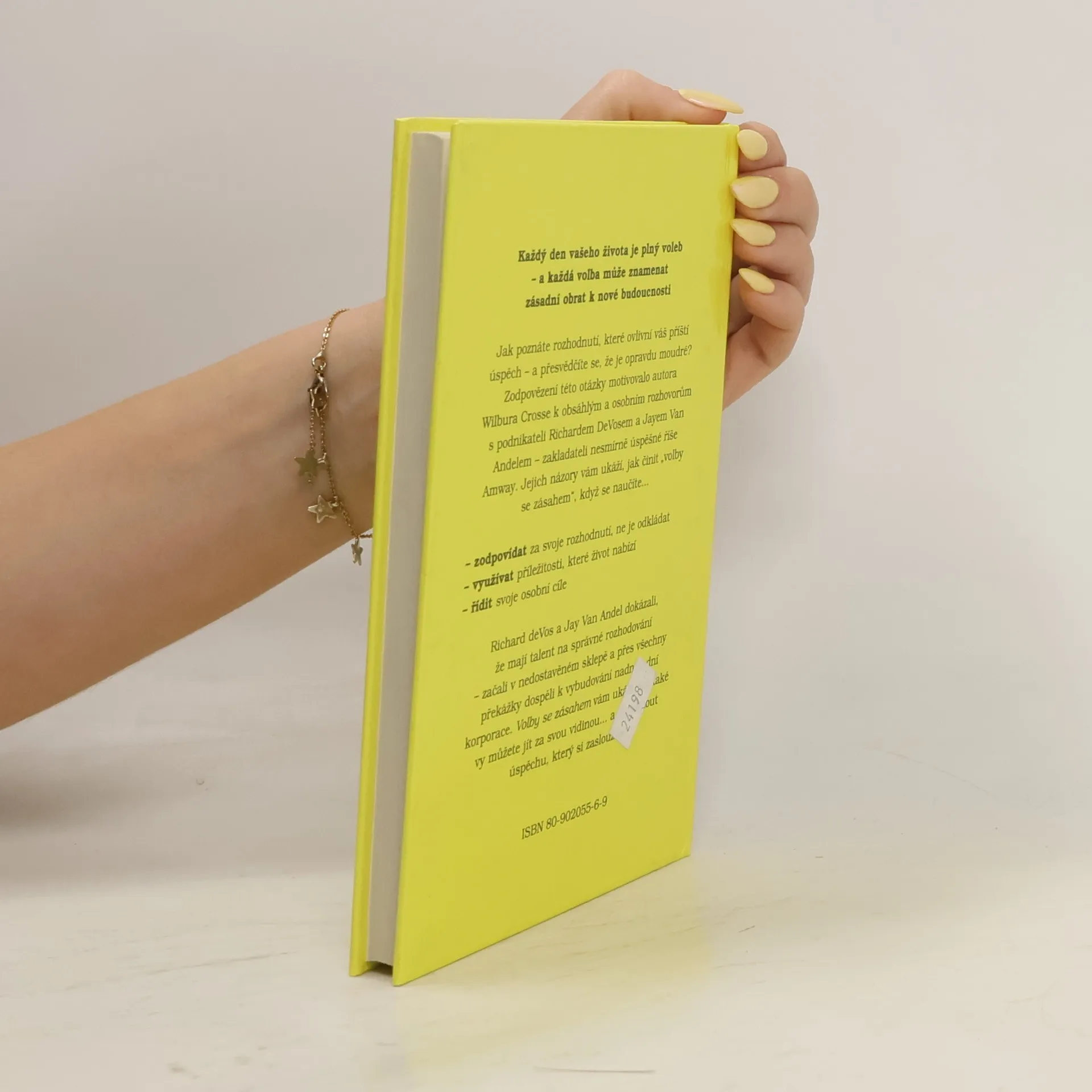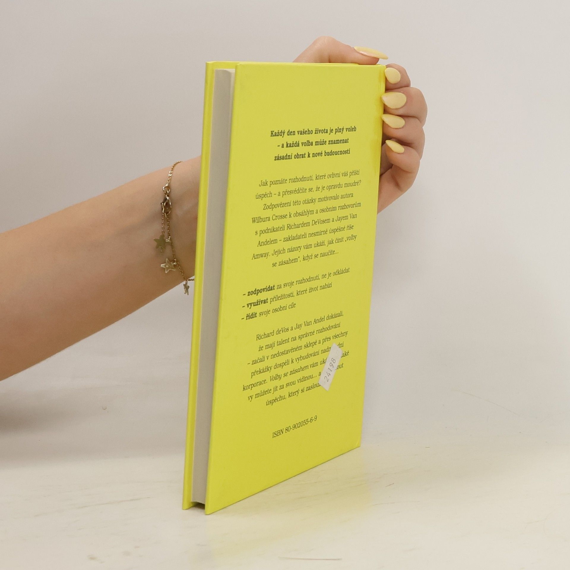 Autor ukazuje názory zakladatelů říše Amway, jak činit každodenní správné volby k docílení vašeho úspěchu, přeměnit nerozhodnost na inspiraci. Amway je americká firma založená v roce 1959 Jayem Van Andelem a Richem De Vosem. Firma prodává především drogerii (vlastní výroby), kosmetické přípravky Artistry a E.F.N.Y., potravní doplňky Nutrilite. K distribuci zboží používá multi-level marketing (MLM) nebo také interaktivní distribuci zboží a služeb. Tímto způsobem se dodává cca 40 000 druhů zboží v síti Amway, kterou tvoří přibližně 3 600 000 NVP (nezávislých vlastníků podnikání) přibližně v 80 zemích světa. Zakladatelé Amway Richem DeVosem a Jayem Van Andelem začínali svou kariéru jako distributoři firmy Nutrilite, kterou v roce 1934 založil Carl F. Rehnborg a dodnes vyrábí doplňky stravy výhradně přírodního charakteru a z vlastních ekologických zdrojů.