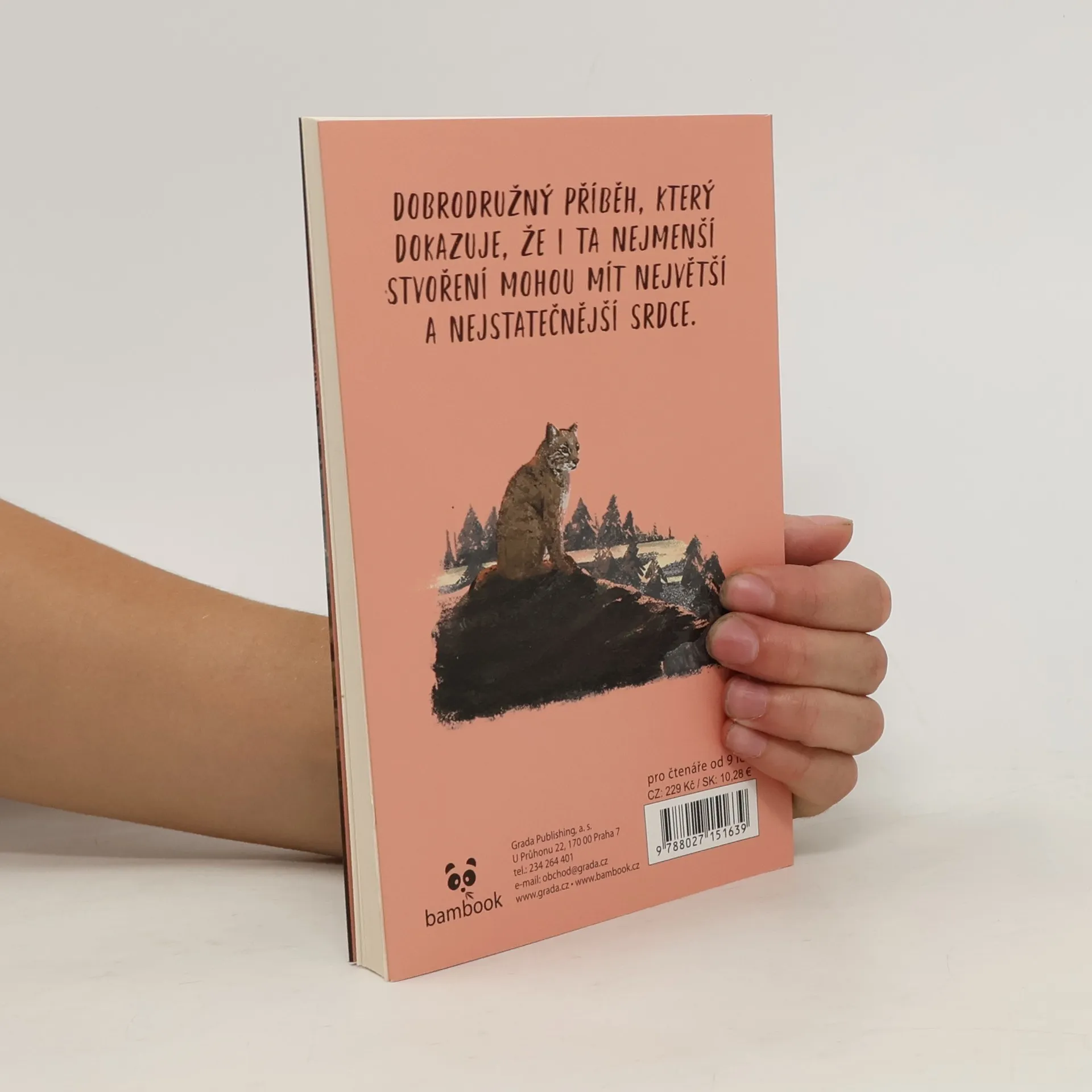 Dobrodružný příběh, který dokazuje, že i ta nejmenší stvoření mohou mít největší a nejstatečnější srdce. Teplá a útulná náruč mámy Millie, vůně čerstvě upečeného chleba, chutné jídlo podávané v modré misce – to všechno pro kočičku Mínu znamená domov. Když máma Millie náhle onemocní, pohodlný život se Míně rázem obrátí vzhůru nohama. Mína by pro svého milovaného člověka udělala cokoli, a tak vyrazí do města pro pomoc! Naléhavé poslání ji zavede do stinného a nepřátelského lesa. Všechny nástrahy neznámé divočiny jí naštěstí pomáhá překonávat nečekaný spojenec – liška. Jenže Mína netuší, že je sleduje tvor nejnebezpečnější… V patách je jim rys. Bude Mínina láska k mámě Millie a nově nalezená důvěra v sebe sama stačit k tomu, aby se postavila divokému nepříteli a přivedla pomoc včas?