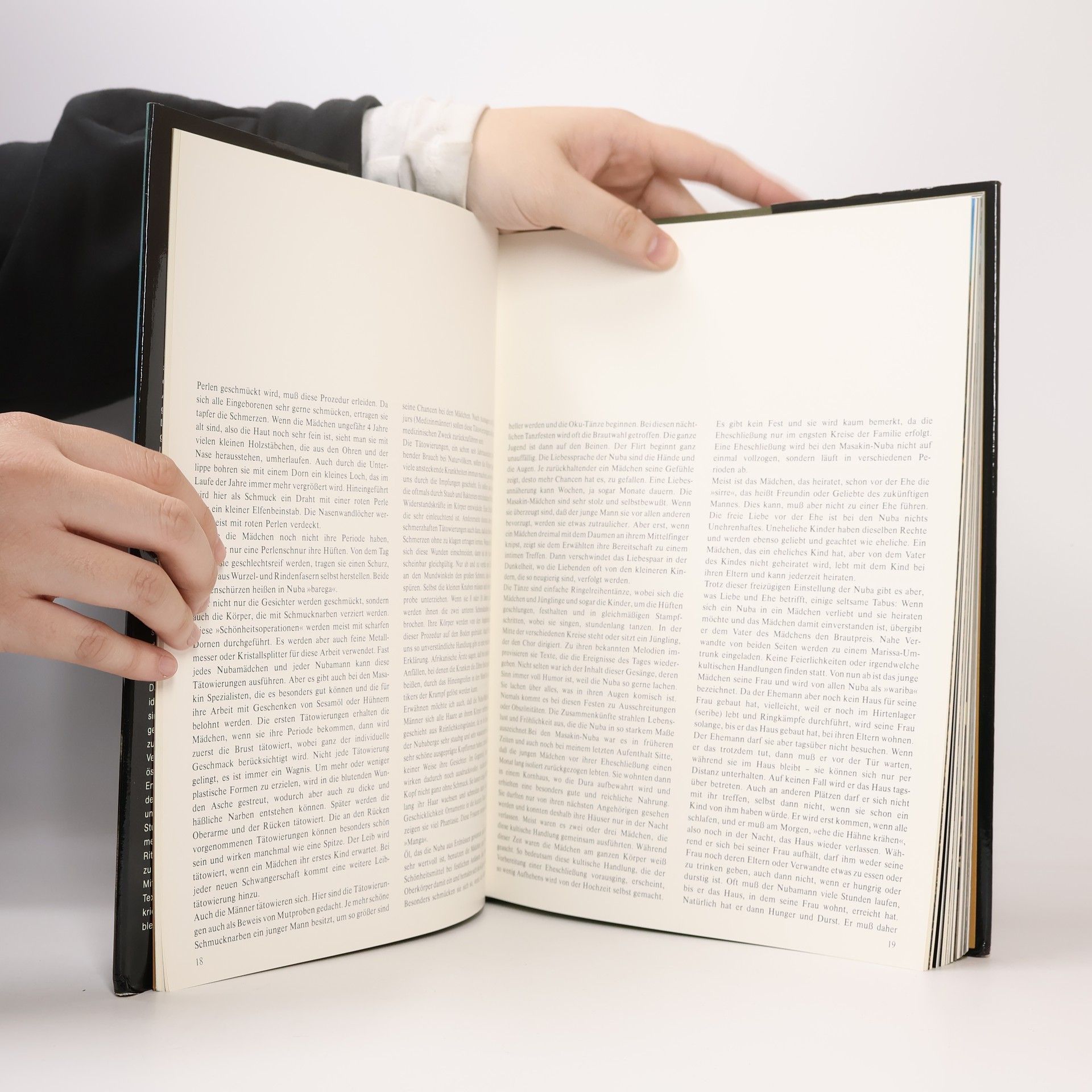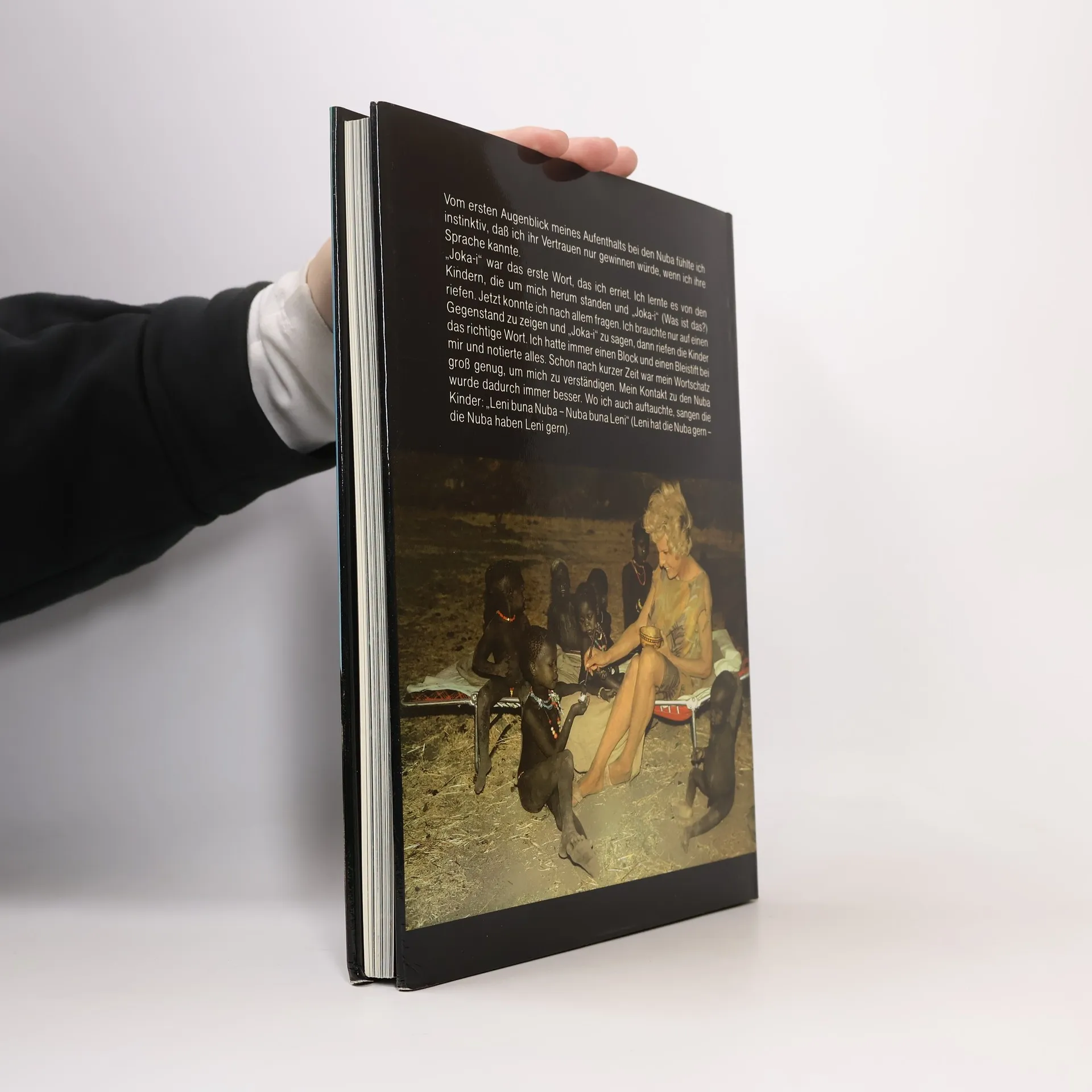 "Dieses Bild veränderte mein Leben!", erinnert sich Leni Riefenstahl, nachdem sie auf einem Foto des Fotografen George Rodger das erste Mal die stolzen Nuba-Ringkämpfer sah. Nicht einmal Missionare hatten es bisher geschafft, das Vertrauen des geheimnisvollen Stammes zu gewinnen. Leni Riefenstahl dokumentiert auf einzigartigen Bildern das Leben des Stammes, sie veranschaulicht Bräuche wie das Tätowieren oder den Messerkampf und erläutert in ihren Texten die Lebensweise in der Natur. Vor allem jedoch zeigt sie die unvergleichliche Anmut und Einfachheit der Menschen - eine Welt wie sie unserer nicht ferner sein könnte